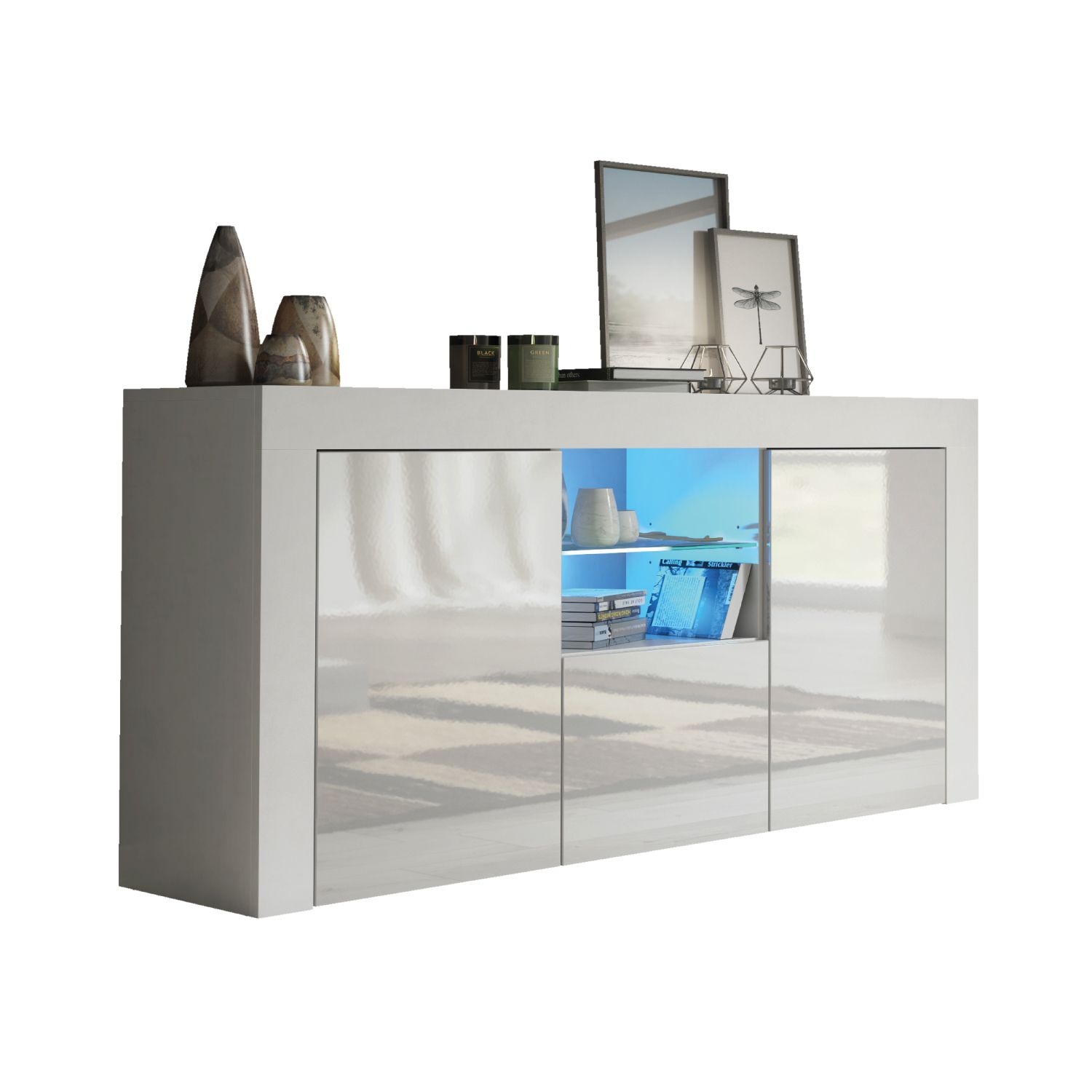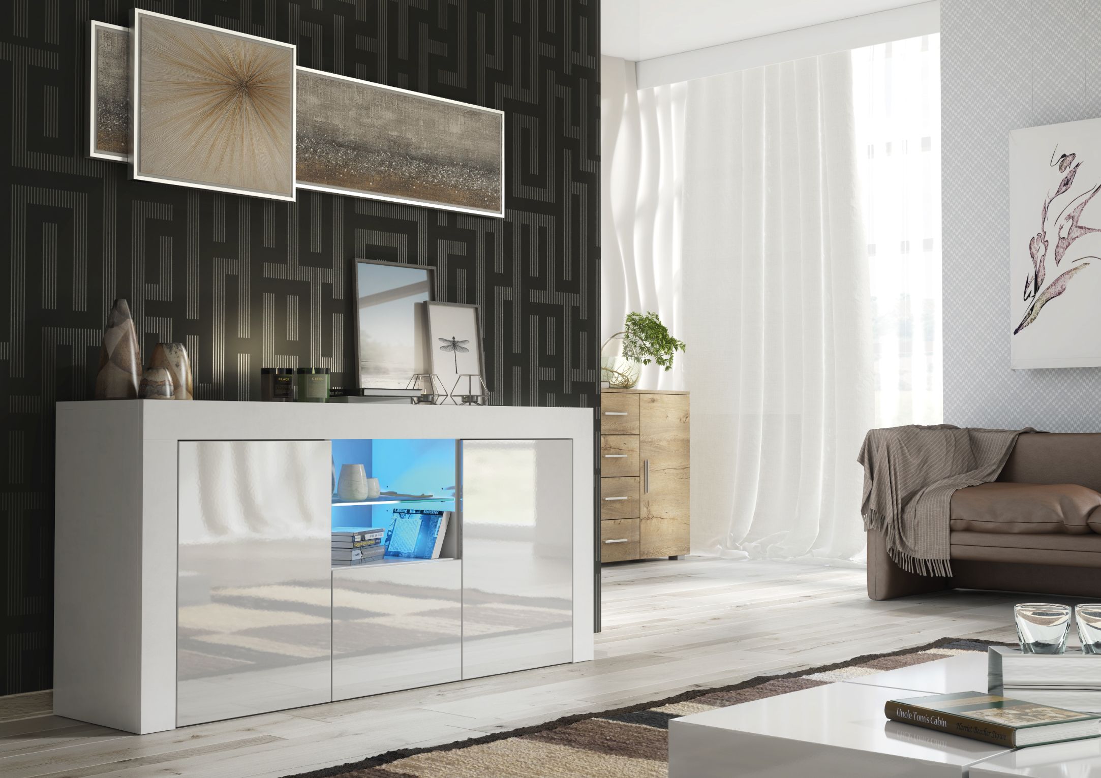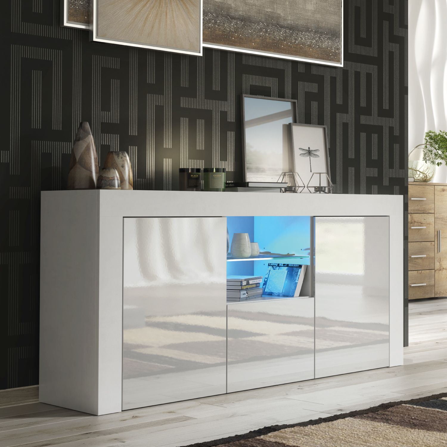 The ASSENS Sideboard strikes the perfect balance between modern design and practical storage, serving as a sleek and stylish addition to your living space. Measuring 145cm (W) x 70cm (H) x 35cm (D), this versatile piece combines contemporary elegance with everyday functionality, making it an excellent choice for any home. The design features two push-to-open doors on each side, concealing spacious compartments with internal shelves to help you stay organized and keep your space tidy. The smaller central doors provide additional hidden storage, ideal for stashing away clutter or everyday items. At the heart of the sideboard, an open compartment divided by a sleek glass shelf offers ample space for media devices, decorative items, or household essentials. Please note: the Oak with Black version features matte black doors, providing a unique and understated alternative to the glossy finishes available in other options. Available in White & Gloss Doors, White & Grey Gloss Doors, Black & Gloss Doors, Walnut & Black Gloss Doors, Oak & White Gloss Doors, Oak & Black Matt Doors, and Dark Grey & Gloss Doors.