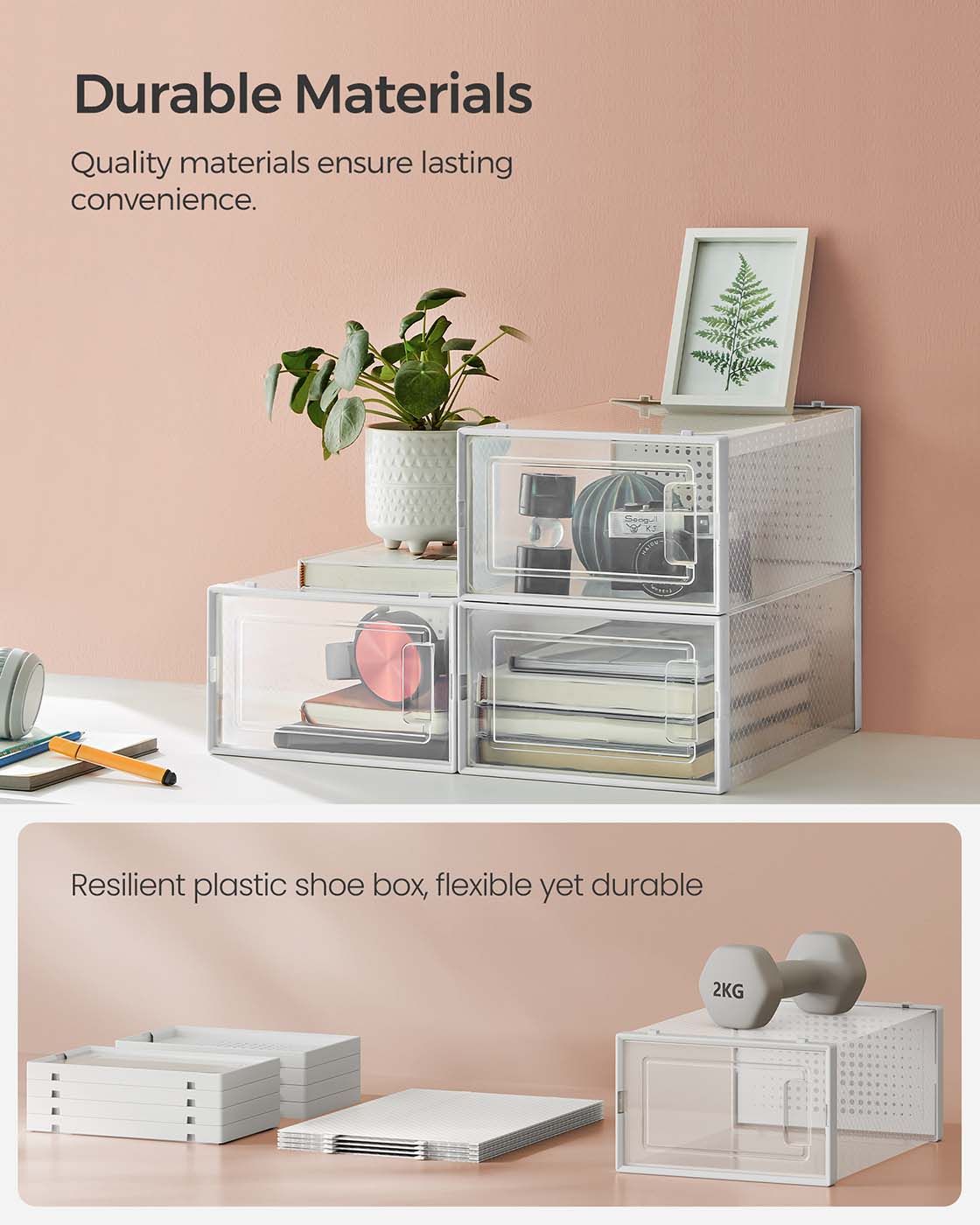 ASTRAH Shoe Box - 15 Pack Transparent Small Sized ShoeBox - White