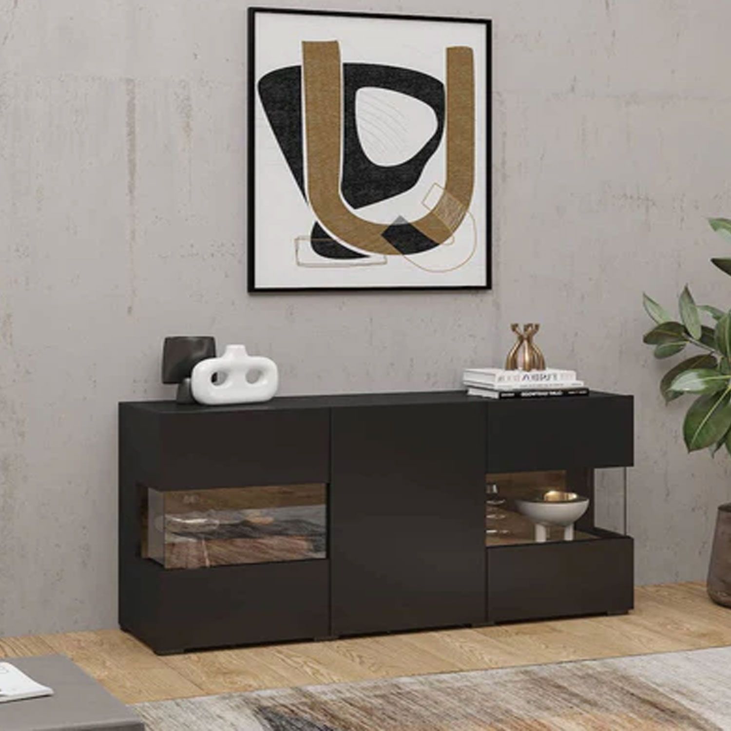 Astral Apex Sideboard with Partially Glazed Doors - Black