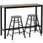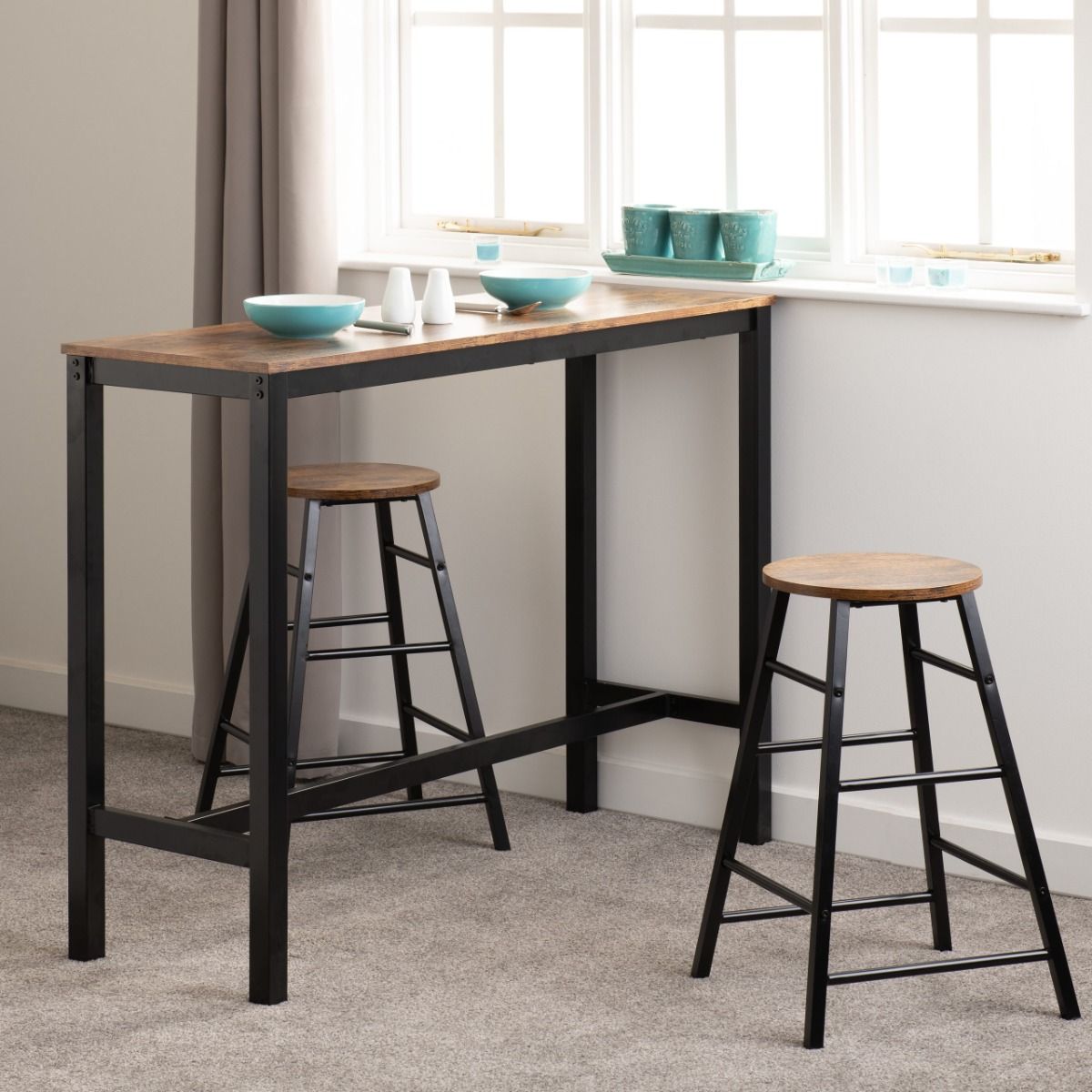 Introducing the Athens Breakfast Bar Set, a stylish addition to any kitchen or dining space. Featuring an acacia effect finish and black metal legs, this set includes a table and 2 stools for a complete breakfast solution. With ample stock available at Home Done Furniture, enjoy comfortable seating and a sturdy MDF table top that lasts. The breakfast bar set is perfect for small gatherings, everyday meals, and casual dining. Its modern design and sturdy construction make it a great addition to any home.