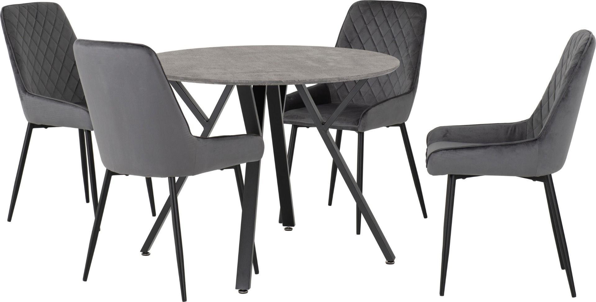 Athens Round Dining Set with Avery Chairs - Concrete Effect Black Grey Velvet