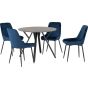 Athens Round Dining Set with Avery Chairs - Concrete Effect Black Sapphire Blue Velvet