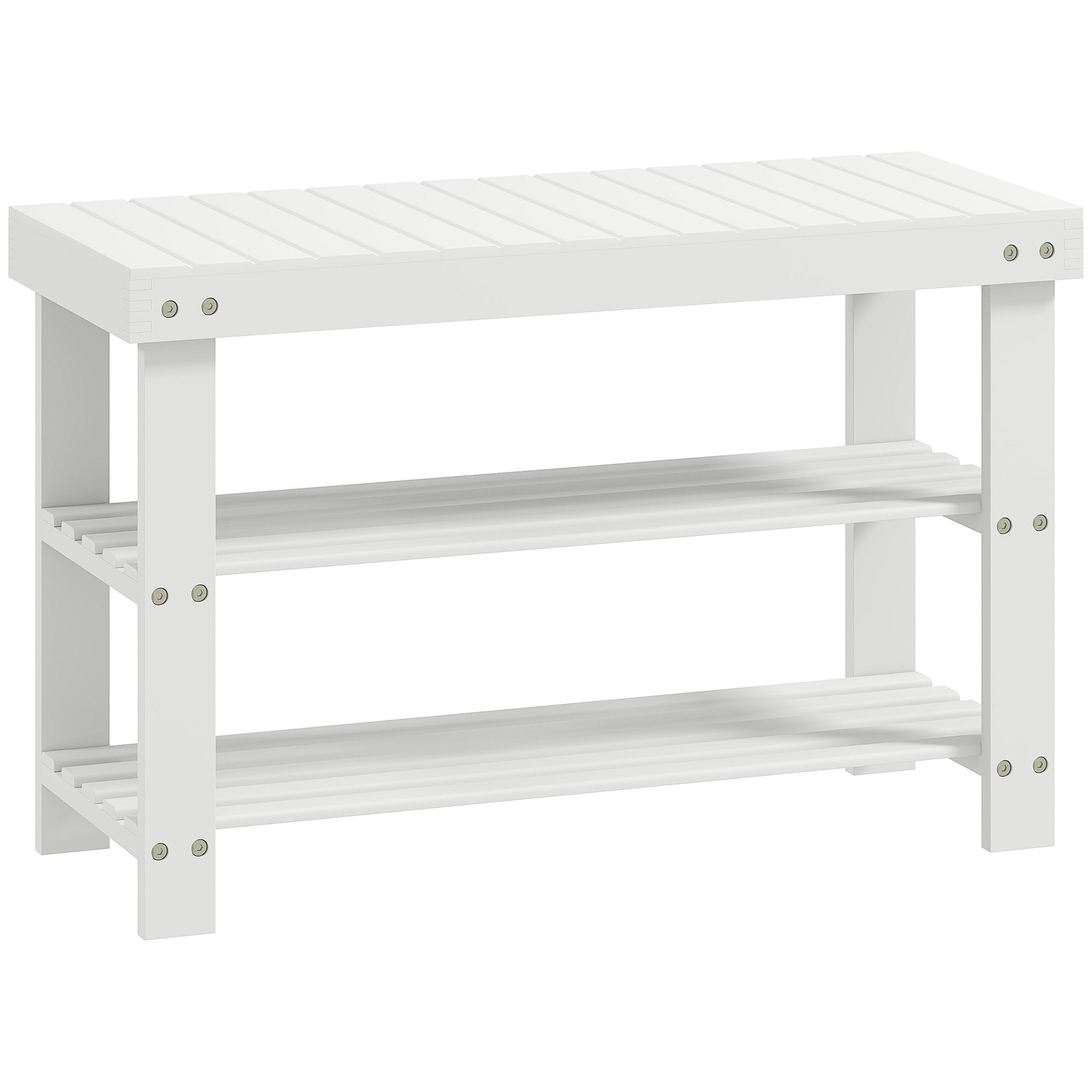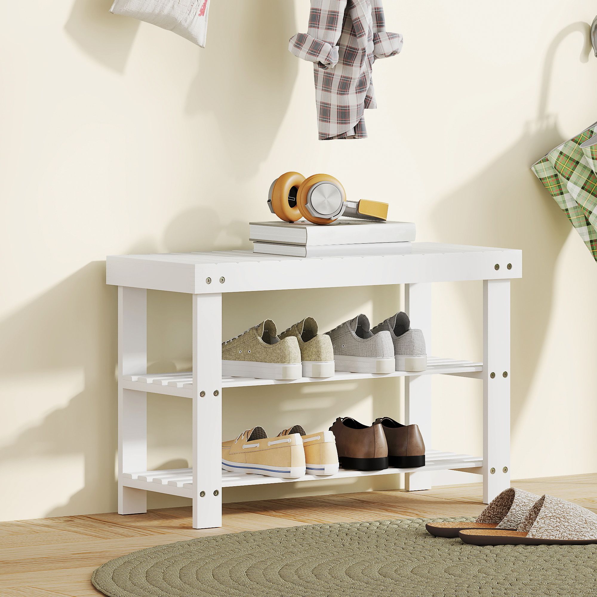 ATHERBY Bamboo Shoe Storage Bench with 2 Shelves - White