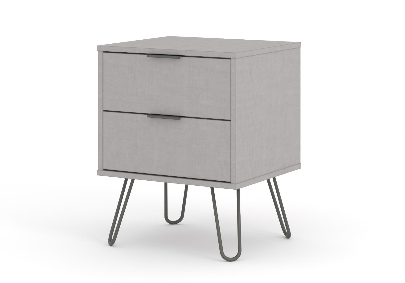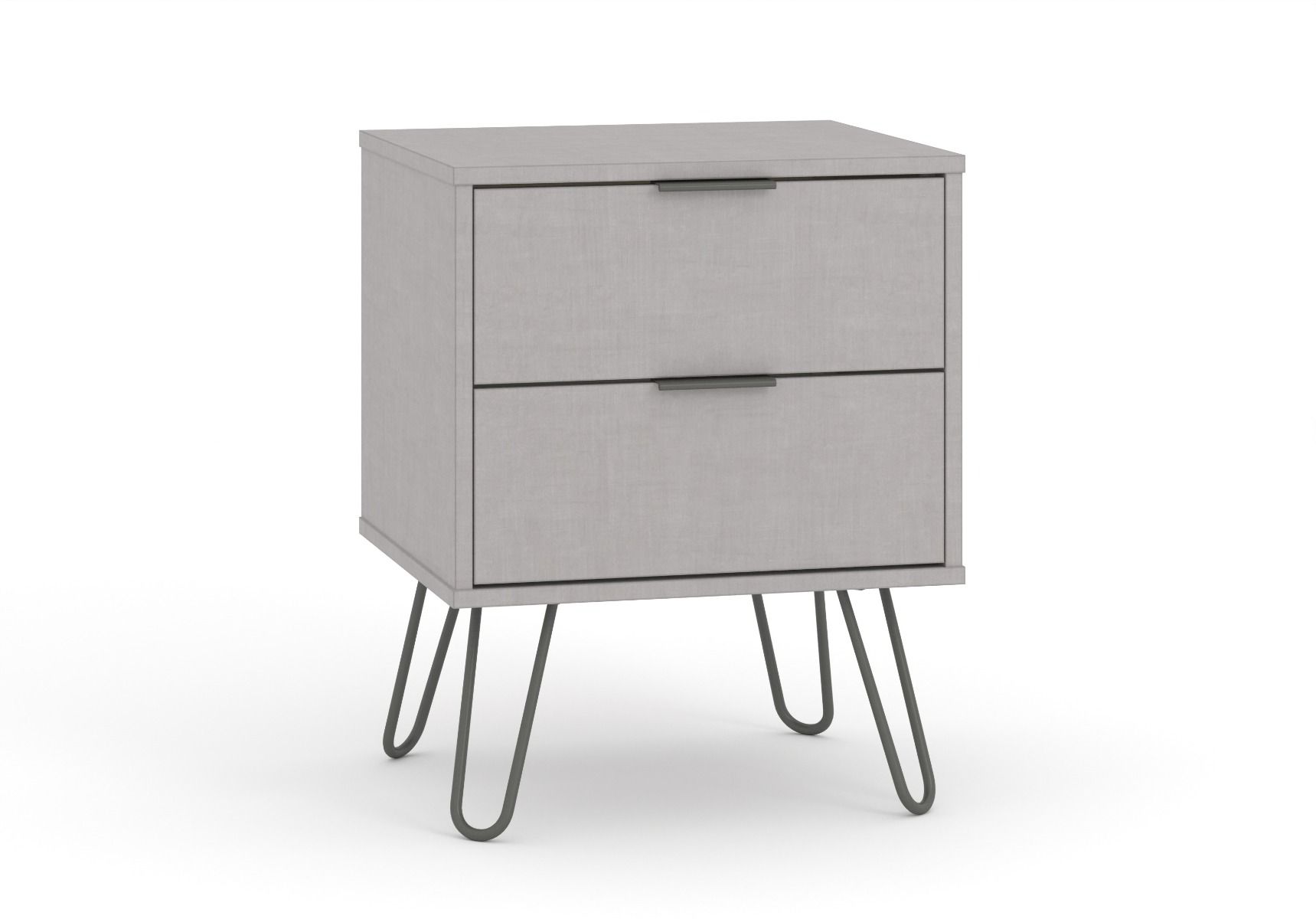 Bedside Table - AUGUSTA 2 Drawer Nightstand Grey 45cm