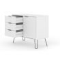 Our compact industrial styled small sideboard offers plenty of drawer and cupboard storage in an easy to clean, crisp white textured melamine finish with plastic pull handles and metal feet.