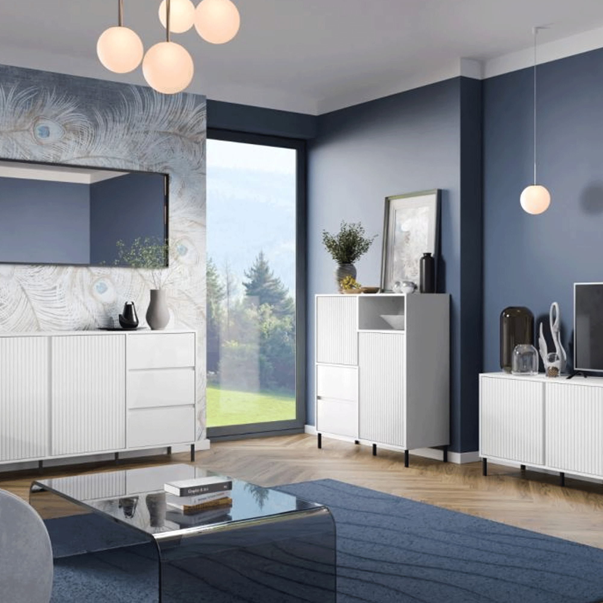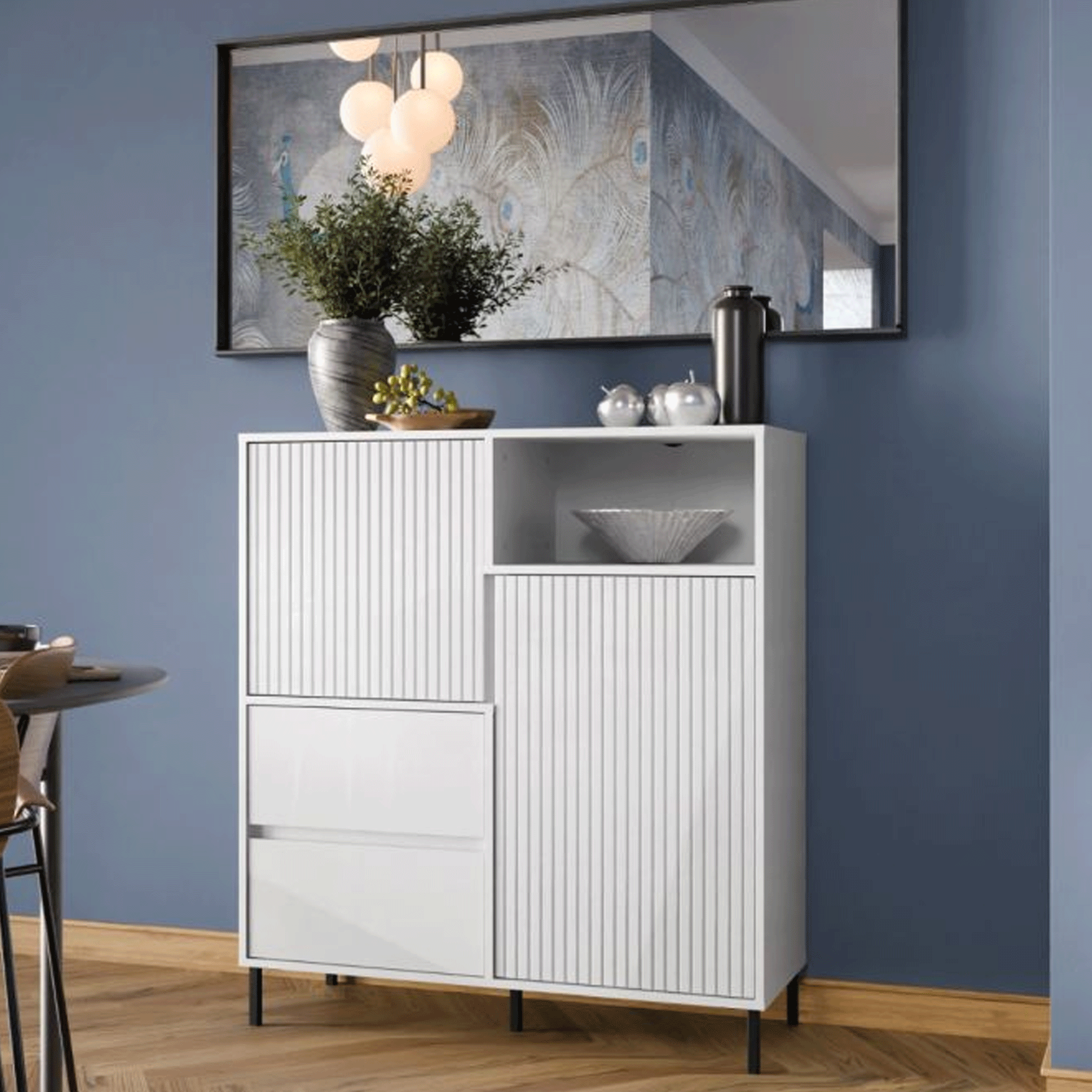 The AURELITH White Sideboard with 2 Doors and 2 Drawers provides versatile storage for living and dining rooms. Its clean white finish complements modern interiors, while the compartments keep tableware and accessories neatly organised. A practical and stylish addition to any contemporary space.