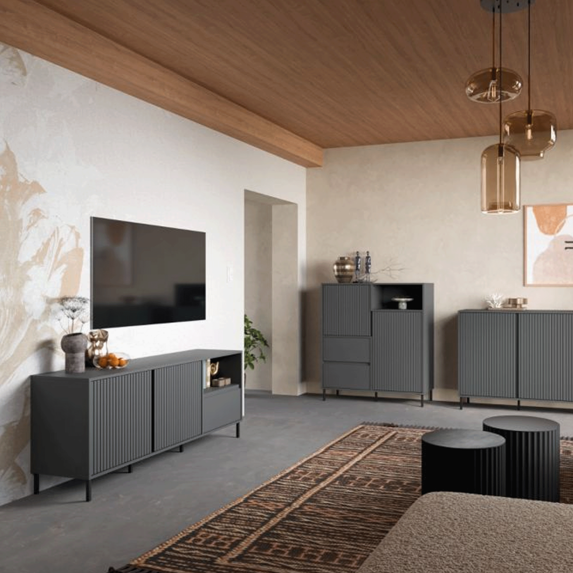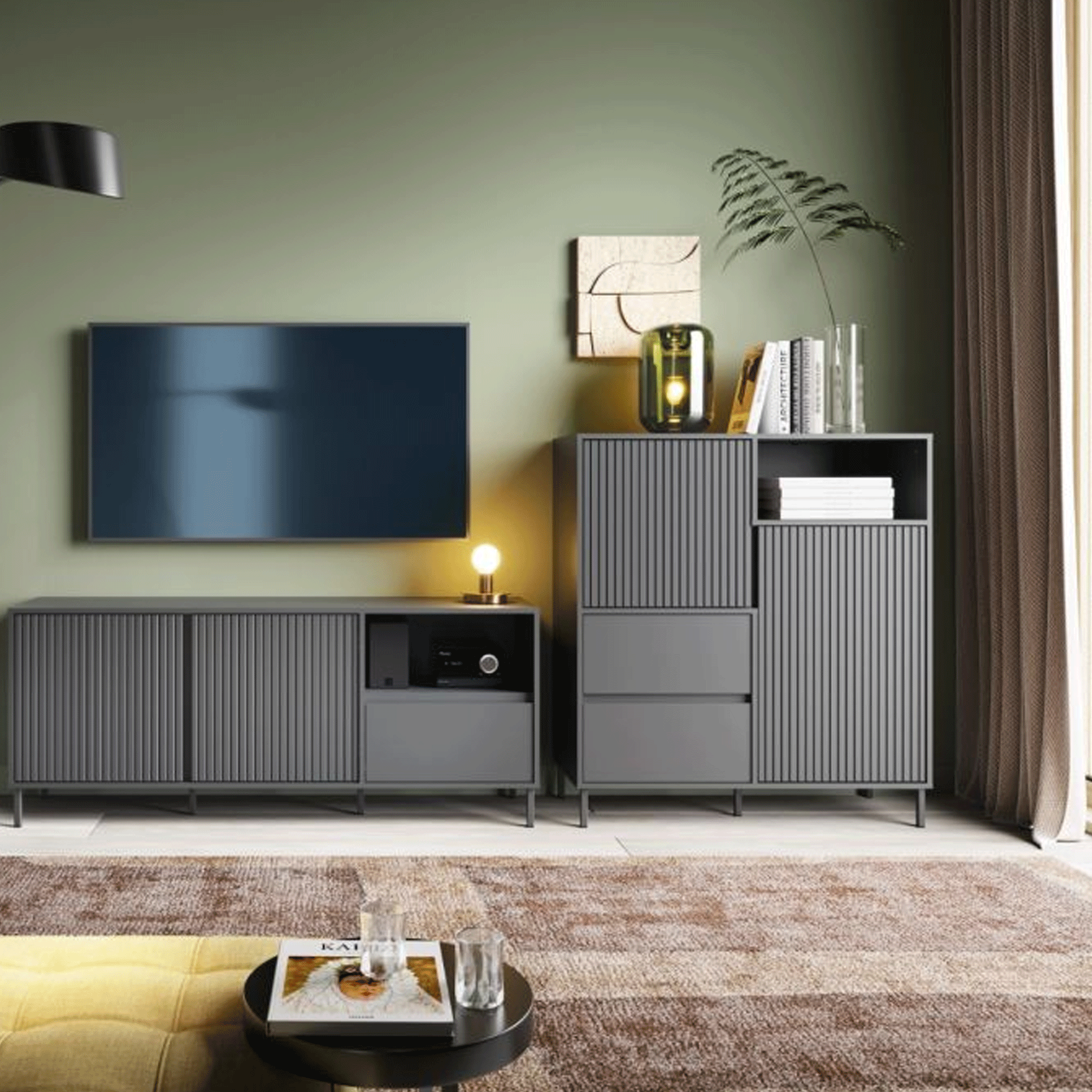 AURELITH 2 Doors Wide TV Unit with 1 Drawer - Grey