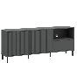 The AURELITH Grey Wide TV Cabinet with 2 Doors and 1 Drawer provides stylish storage for electronics and accessories. Its sleek design and practical compartments help maintain a tidy and modern living space.