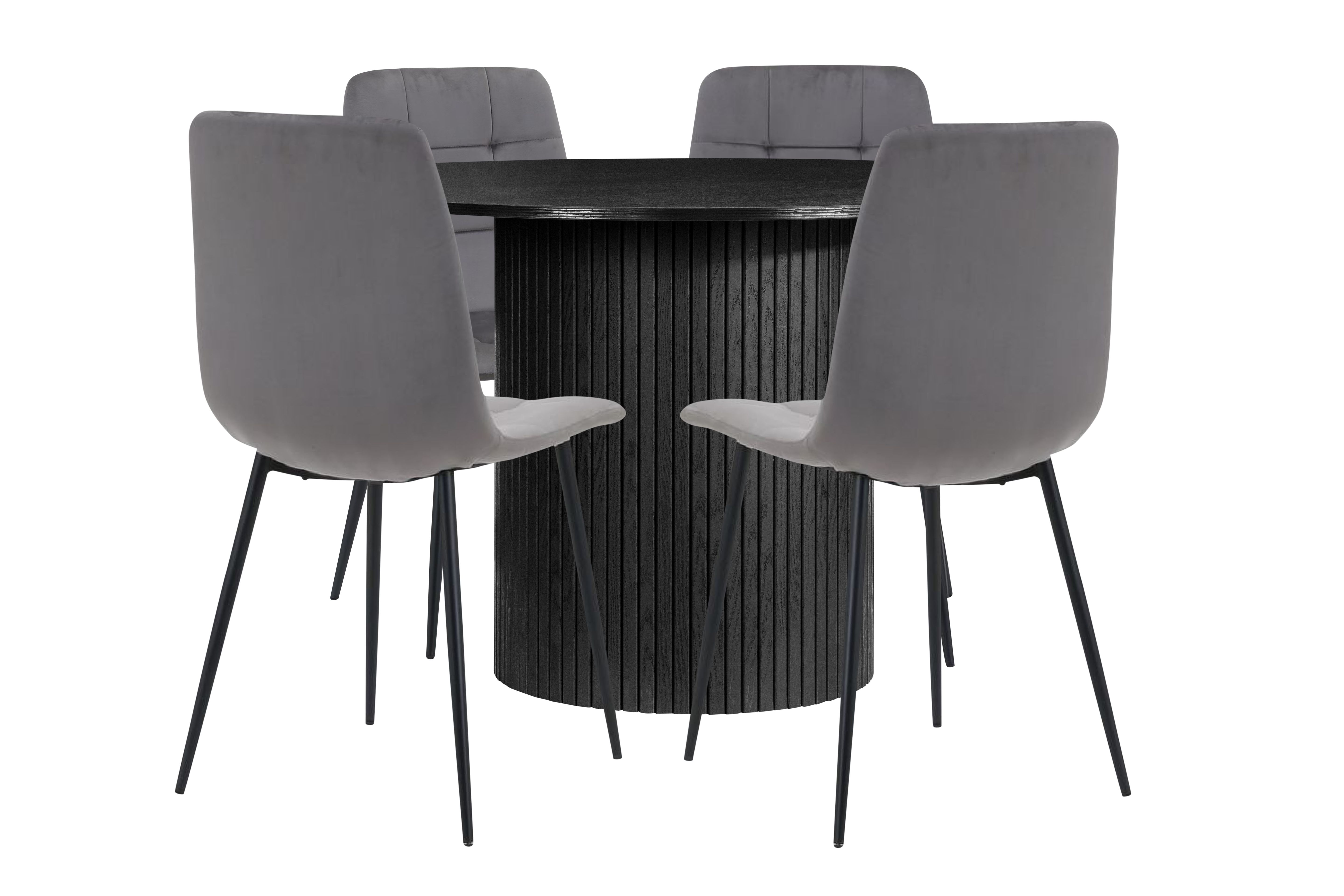 AUREN Fluted Round Dining Table with 4 Fabric Chairs - Black