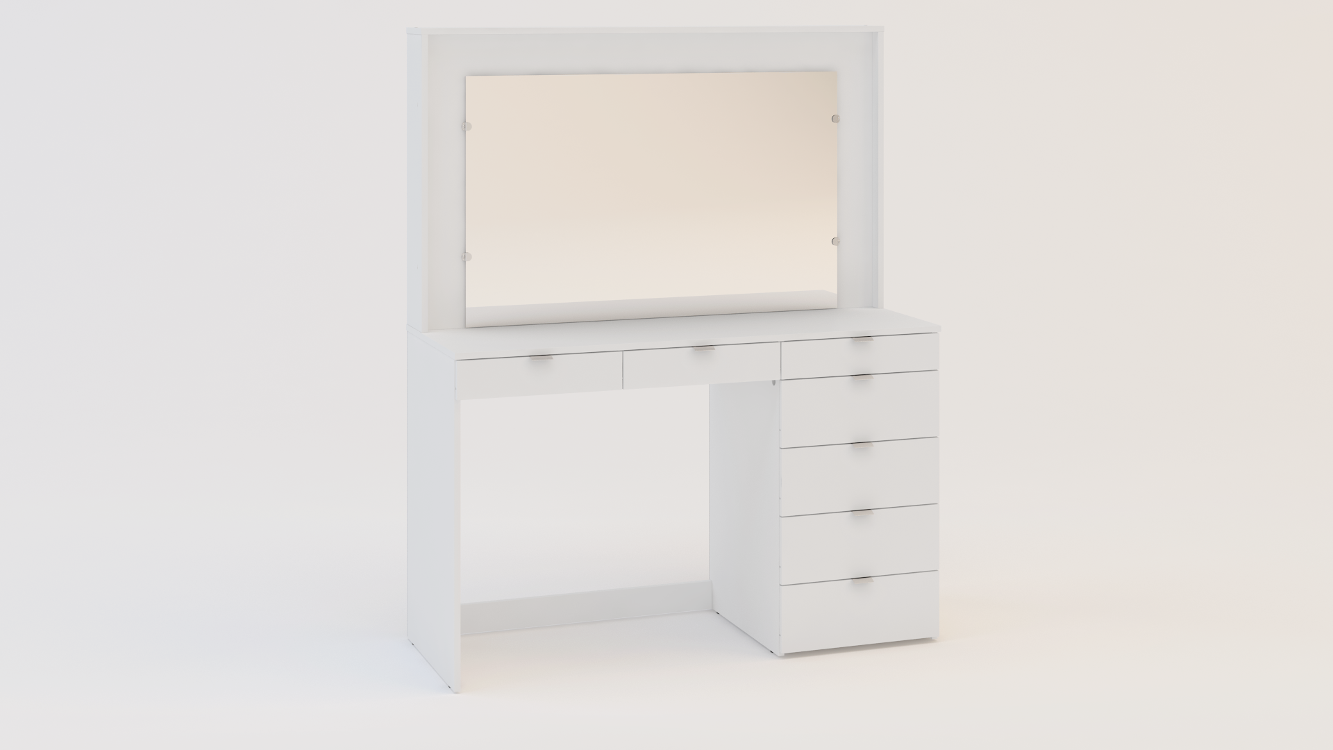 Putting your lippy on for a big night out or taking off your make-up at the end of a hard day's work will be a pleasure in front of the beautifully designed Ava 5 drawer dressing table & mirror. The Ava 5 drawer dressing table & mirror set is a vanity table like no other. Featuring 5 drawers for storing make-up, skincare, jewellery and other dressing essentials. The large wall mirror will let you shine in a dazzling light Cleaning and Care: Wipe with dry cloth.