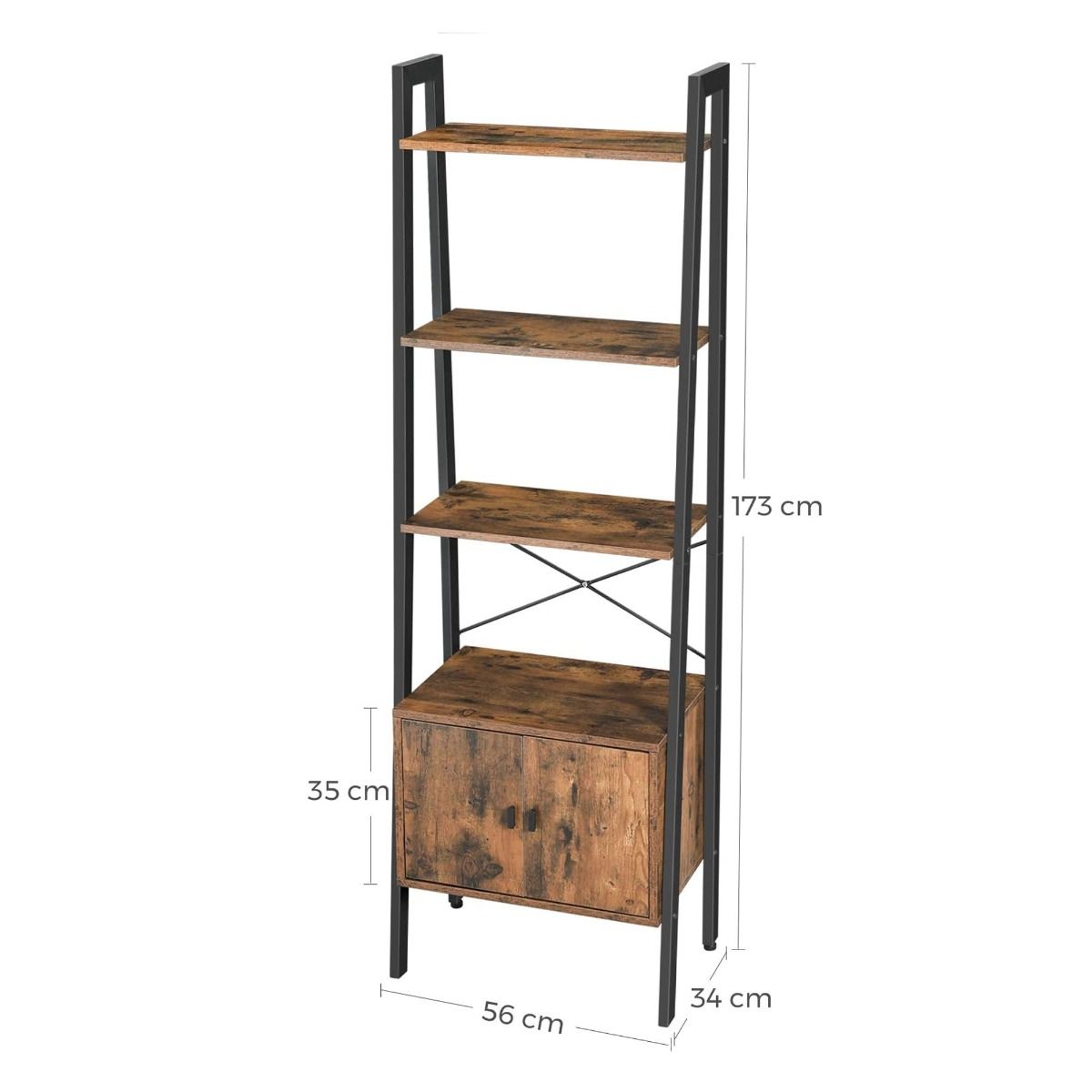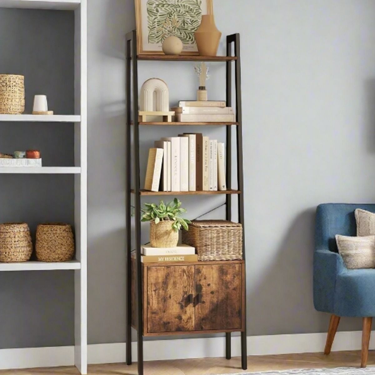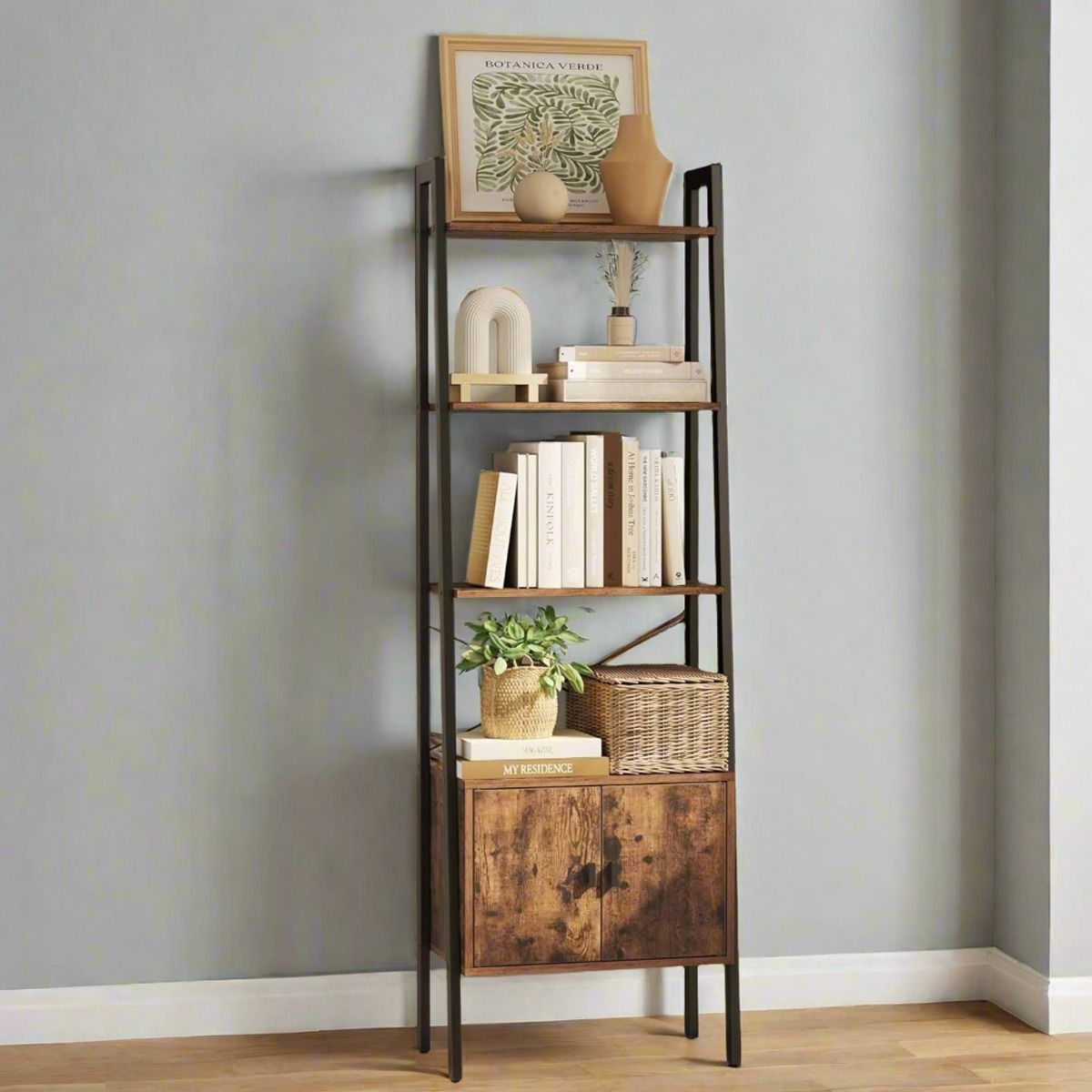 AVELORA Bookcase 4-Tier Ladder Shelf with Cupboard - Rustic Brown
