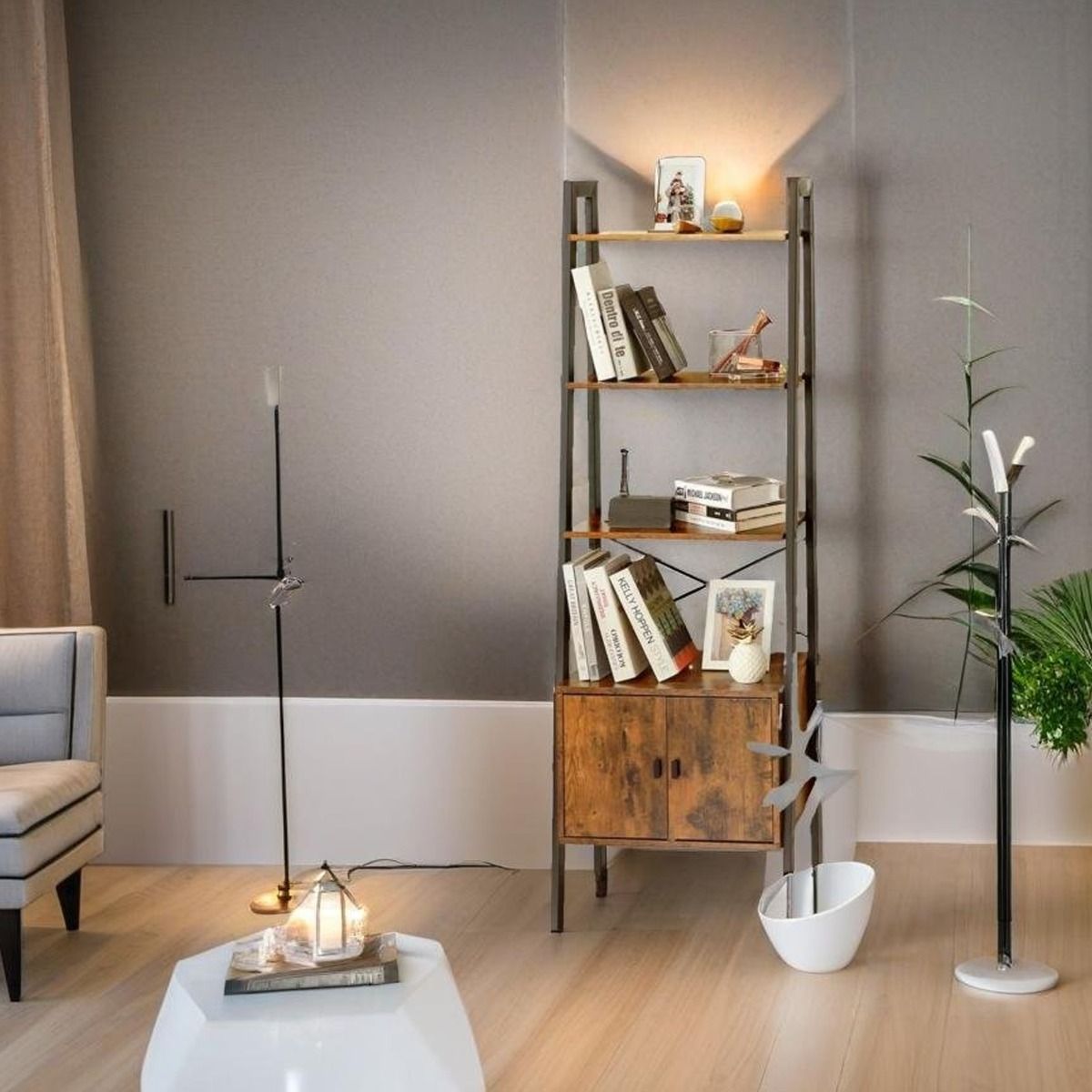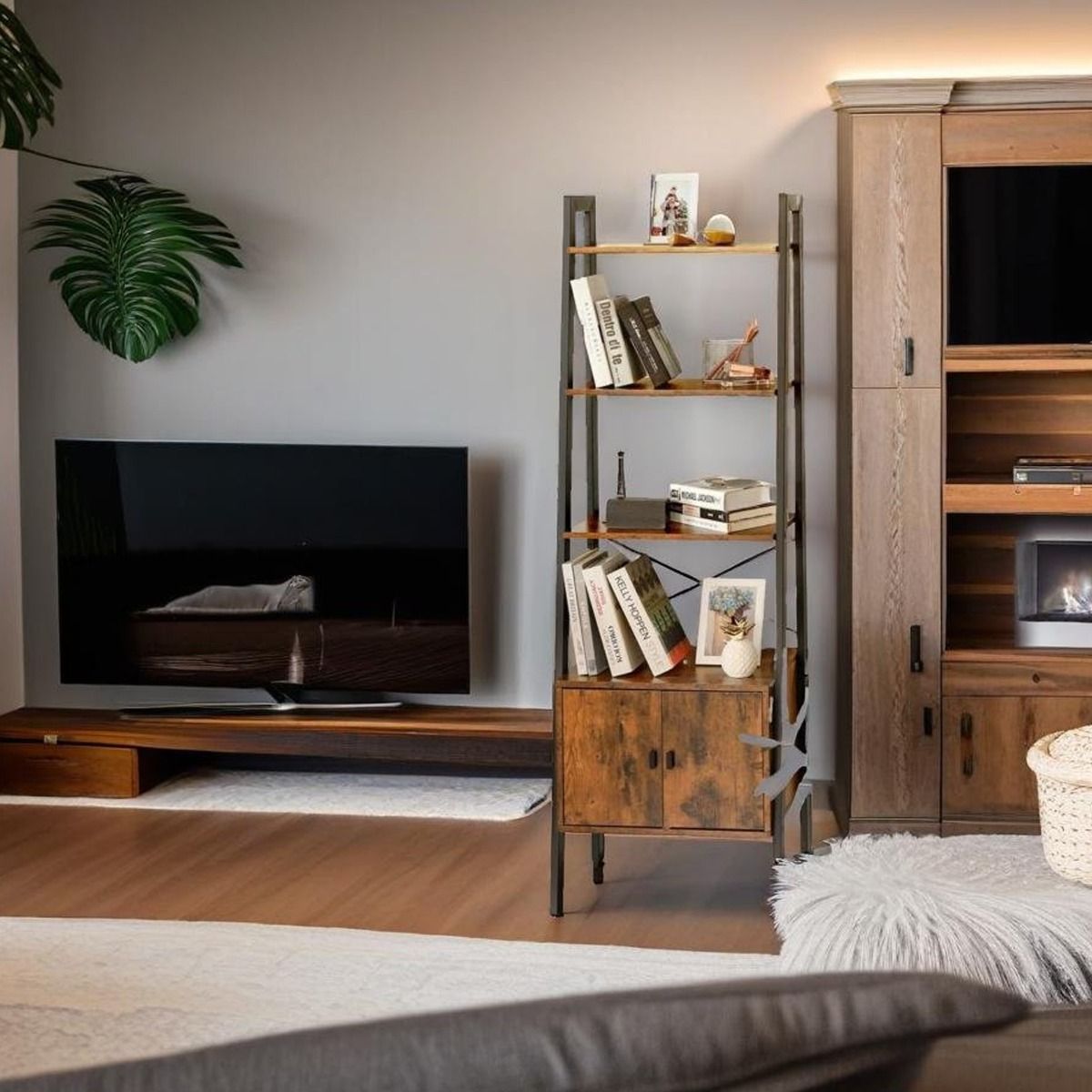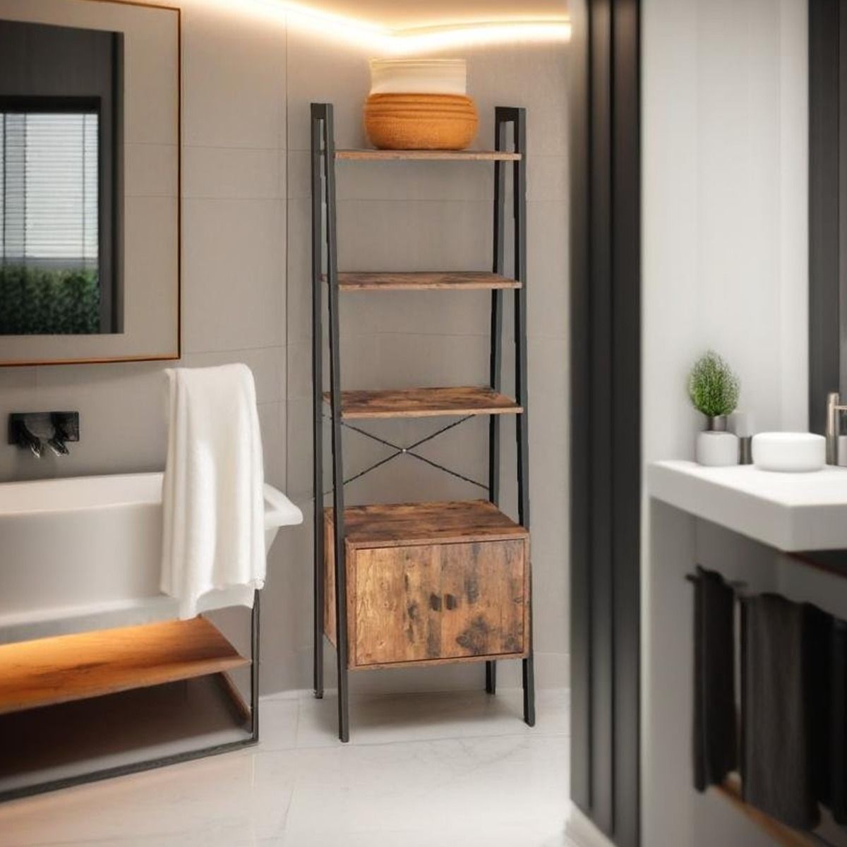 AVELORA Bookcase 4-Tier Ladder Shelf with Cupboard - Rustic Brown