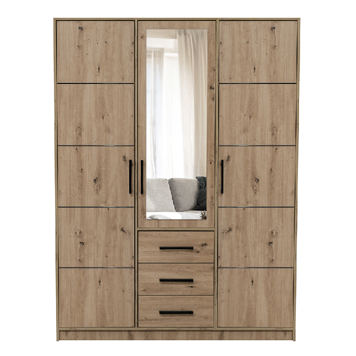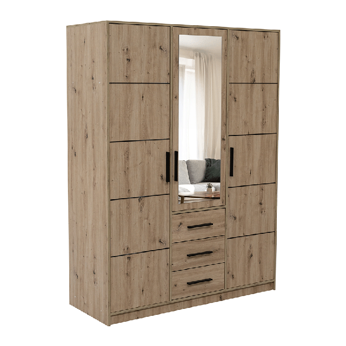 AVERTON 3 Door Mirrored Wardrobe with 3 Drawers Medium Oak - 149cm