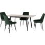 Avery Extending Dining Set with Avery Chairs - Concrete Grey Oak Effect Black Emerald Green Velvet
