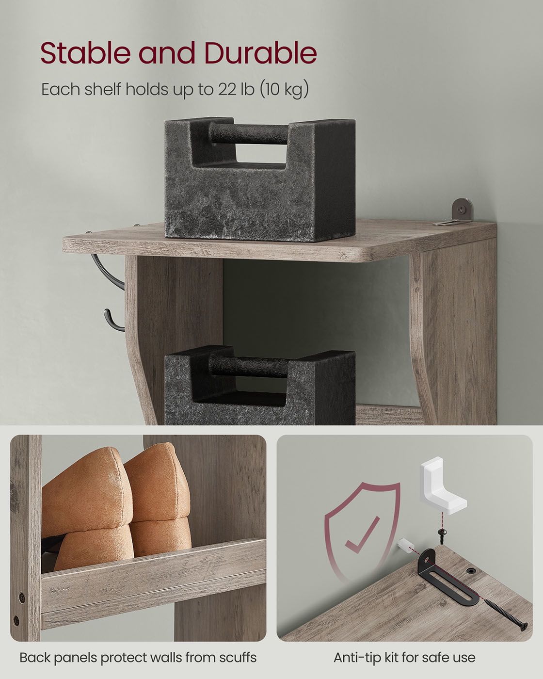 Max-Static Load of Each Shelf: 22 lb (10 kg)