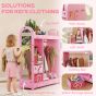Kids Clothes Rail Wardrobe with Mirror and Shelves - Pink