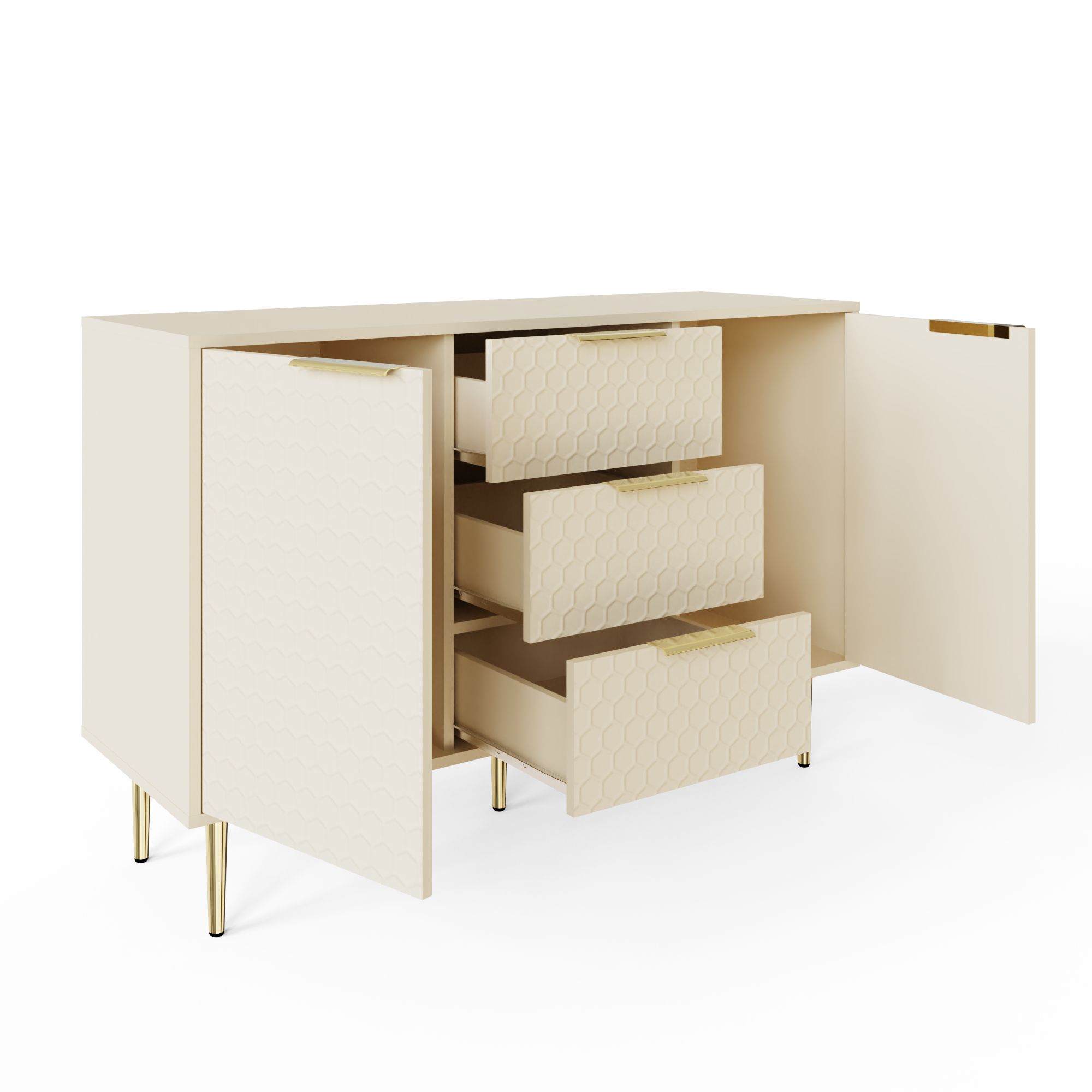AZIEL Large 2 Door Sideboard with 3 Drawers - Ivory