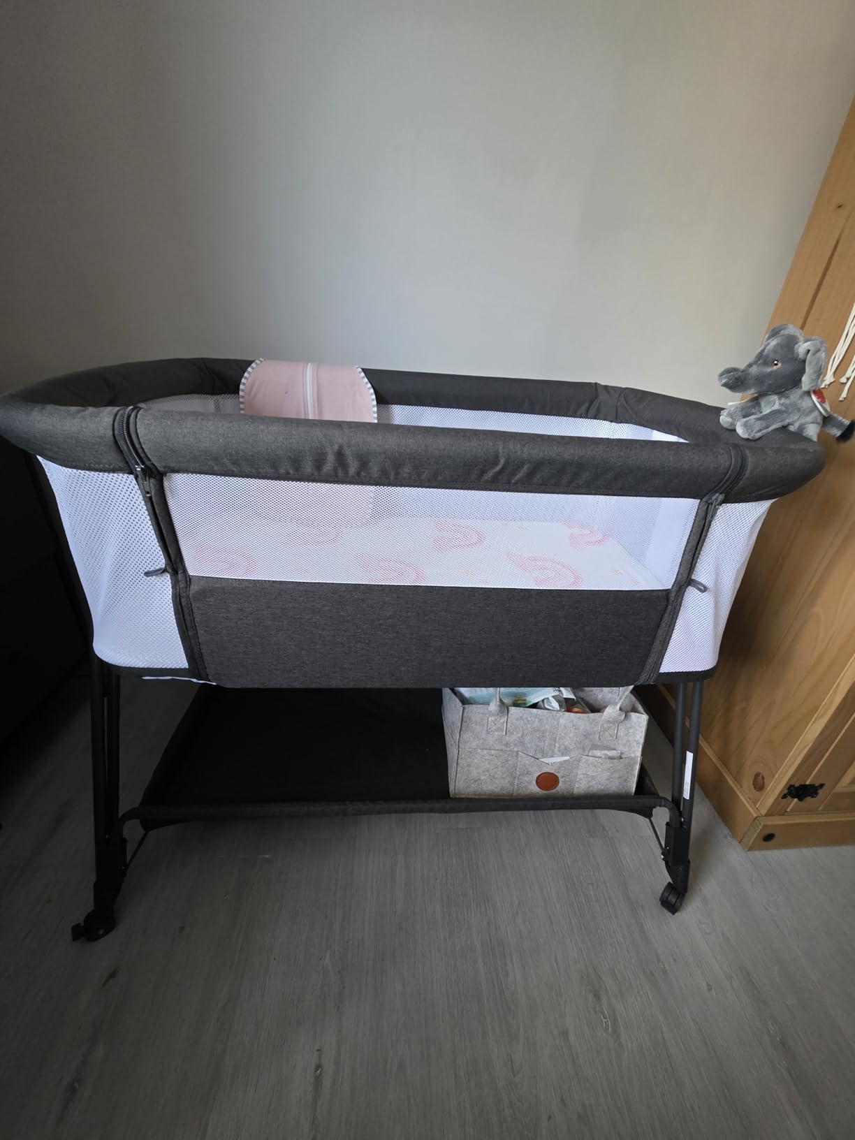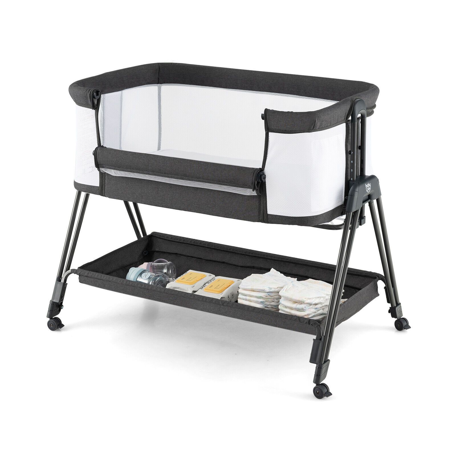 Baby Bedside Crib with Mattress for Birth to 9kg-Grey