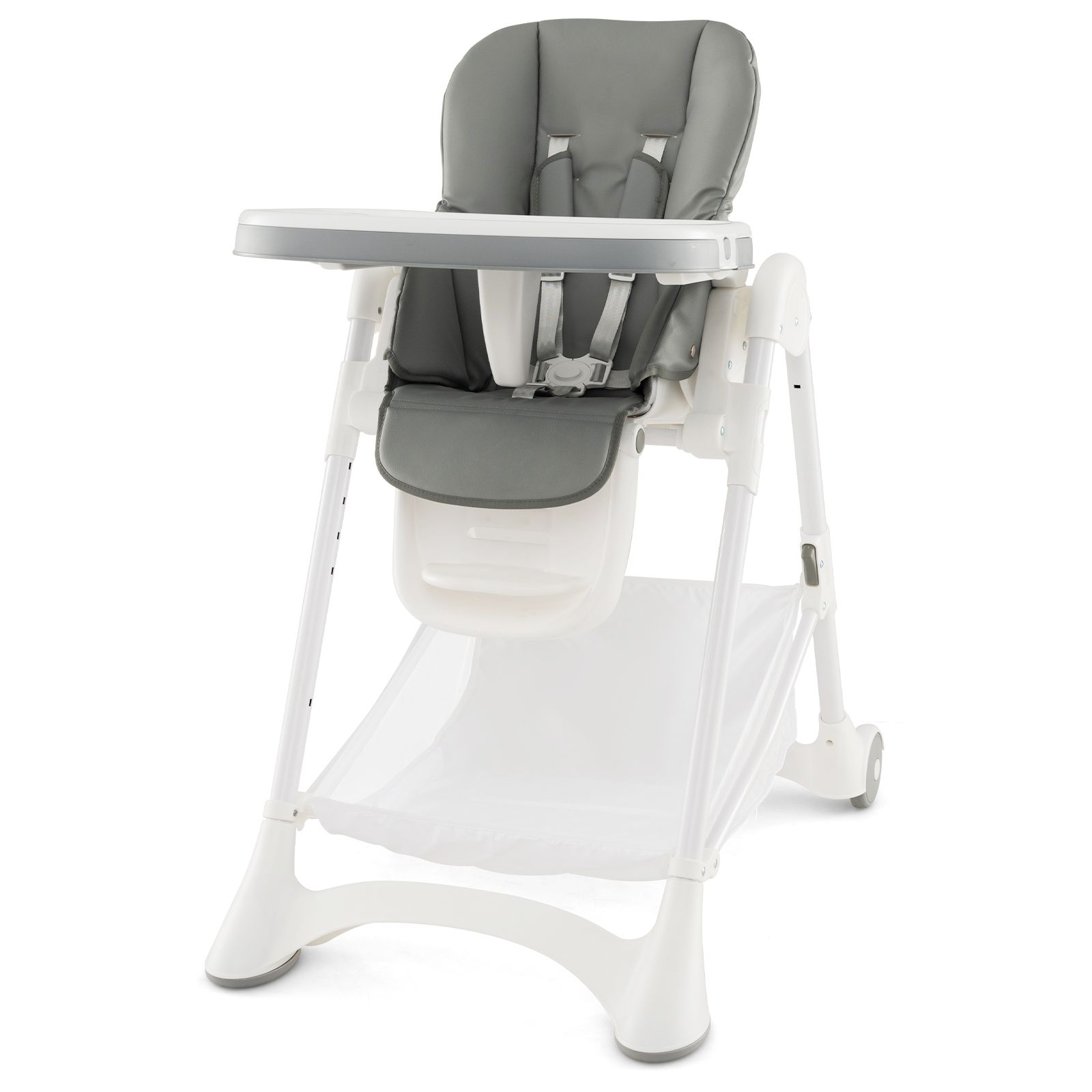 Baby High Chair with Detachable PU Cushion and Lockable Wheels - Grey