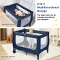 Baby Playpen - 2-in-1 Foldable Baby Playpen with Lockable Wheels and Mattress-Blue