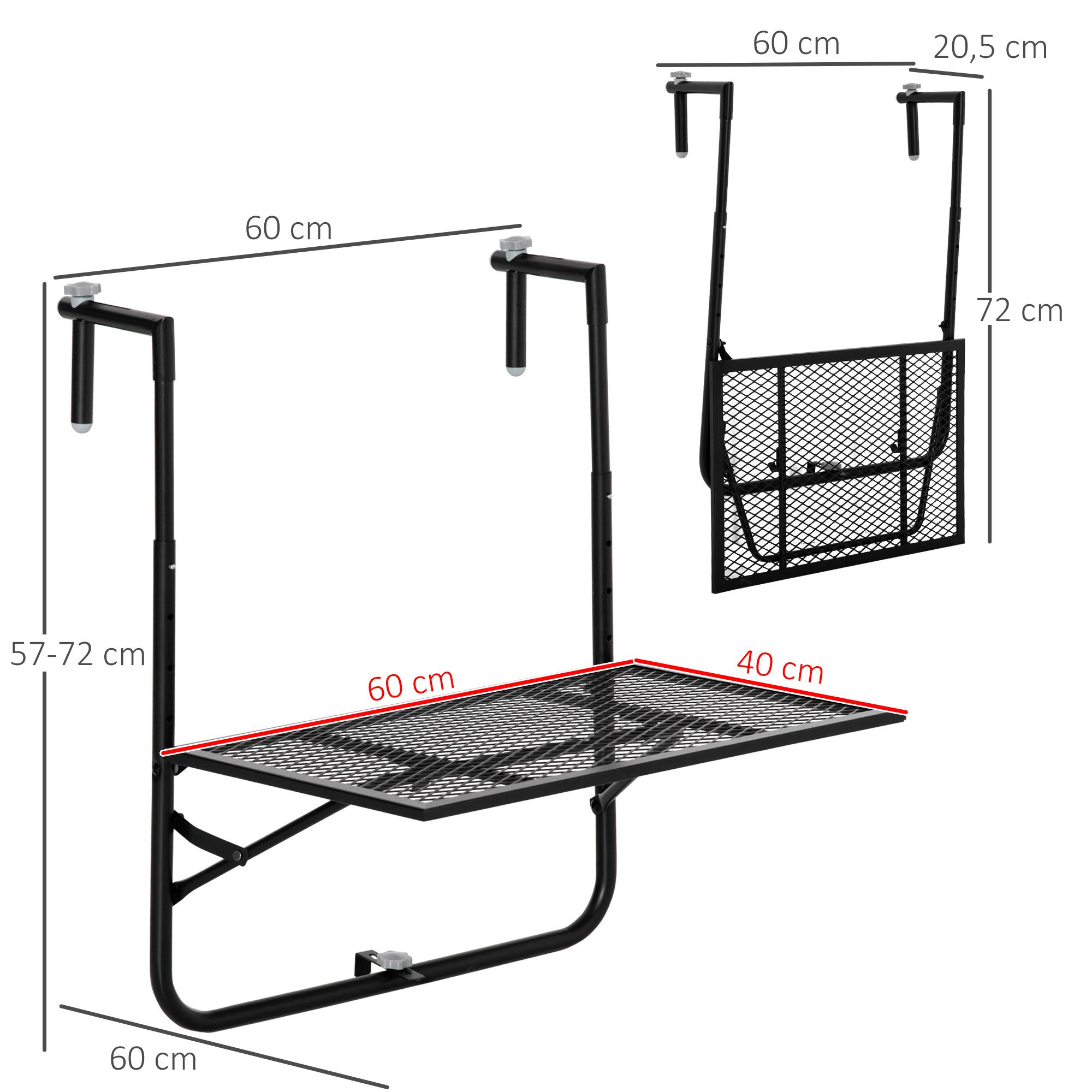 Balcony Hanging Table, Metal Wall Mount Desk, Adjustable Folding Balcony Deck Table for Patio and Garden, Black