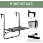 Sit at the balcony, enjoy coffee, tea, cook-tile with this metal railing table from! This table provides a great solution to anyone who has a limited outdoor space. Constructed with metal frame in black finish, it can meet your frequent daily use. With adjustable railing position and adjustable positions for desktop height, it can easily attach to your deck or patio railing. With this smart gadget, you will never spill a drink while enjoying the view from your balcony.