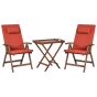 This rustic balcony set is sure to transform your outdoor space into a cosy gathering spot. Crafted from durable acacia wood, both the chairs and coffee table require minimal maintenance to remain in good condition for many years. All pieces are foldable, allowing for easy storage or relocation as required. Moreover, the chairs come with adjustable backrests, perfect for relaxing and unwinding after a tiring day. Besides that, the set is also equipped with thickly padded cushions. The high quality fabric is easy to care for, while the seams are carefully finished and are almost invisible. Thanks to the UV and water resistant materials used, the pillows are sure to last for many years, with the colour staying rich and adding style to your outdoor space. With their clean lines and sophisticated dark hue, the furniture complements a wide range of outdoor decor styles.