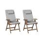 BALSA Set of 2 Garden Chairs with Cushions Acacia Wood Grey Melange - Brown