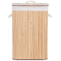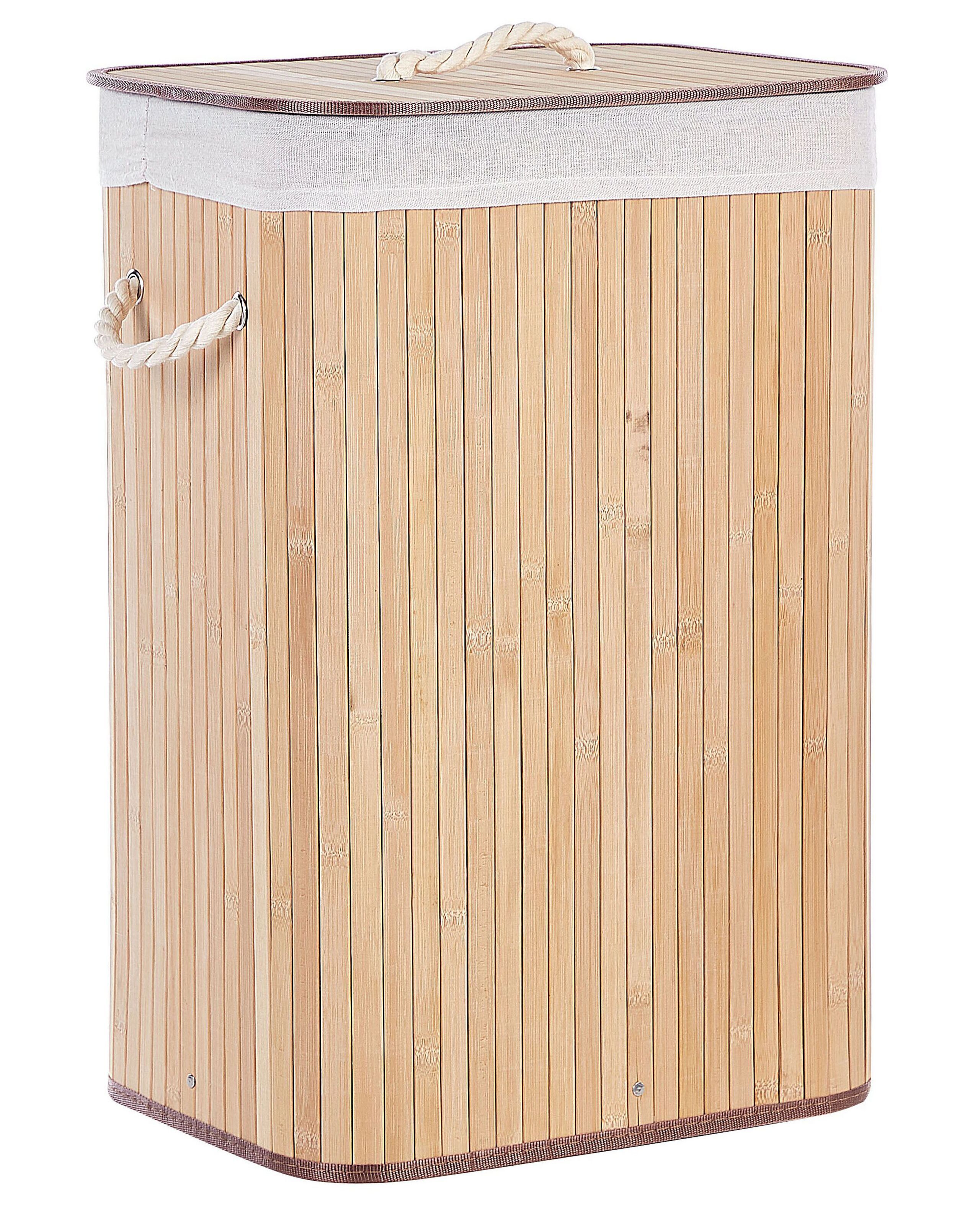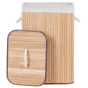Compact and practical - it is how this laundry basket can be described. Made of bamboo wood, it features solid construction and basic yet aesthetic design. The inside is padded with removable and washable fabric for hygienic use, whereas the lid and sides of the basket have additional handles that facilitate its transport. Thanks to its capacious design, the basket can be used both for laundry and storing your accessories. Details: Color: Light Wood, White. Main material: Bamboo Wood. Additional material: Polyester, Polycotton, Viscose. Material Composition: 30% Cotton, 10% Viscose, 60% Polyester Weight: 2 Assembly: Does Not Require Assembly