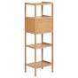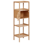 This bamboo bathroom shelving unit offers a stylish and sustainable storage solution with its four-tier design. Crafted from durable bamboo, it features a natural finish that enhances its clean, minimalist look. Each shelf provides ample space for organizing toiletries, towels, and other bathroom essentials. The unit also includes a door, which adds a discreet storage option to keep your items neatly hidden away.
