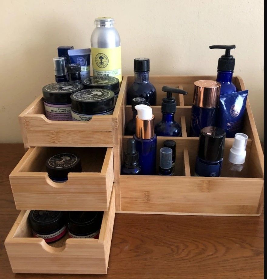 This Bamboo desktop organiser is your perfect choice it add a practical and elegant way of keeping your working surface clean and your accessories at hand. With 2 drawers and a total of 7 compartments this rack offers ample space for your office supplies and accessories. Constructed of natural bamboo it is safe and durable for long lasting use. Great gift for you and your beloved ones!