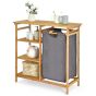 Bamboo Laundry Basket with Removable Pull-Out Bag and Storage Shelf-Natural