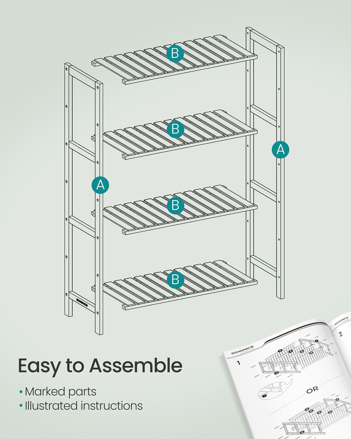 Bamboo Shelf - FINVAS 4 Tier Storage Unit 26 x 60 x 100 cm - White