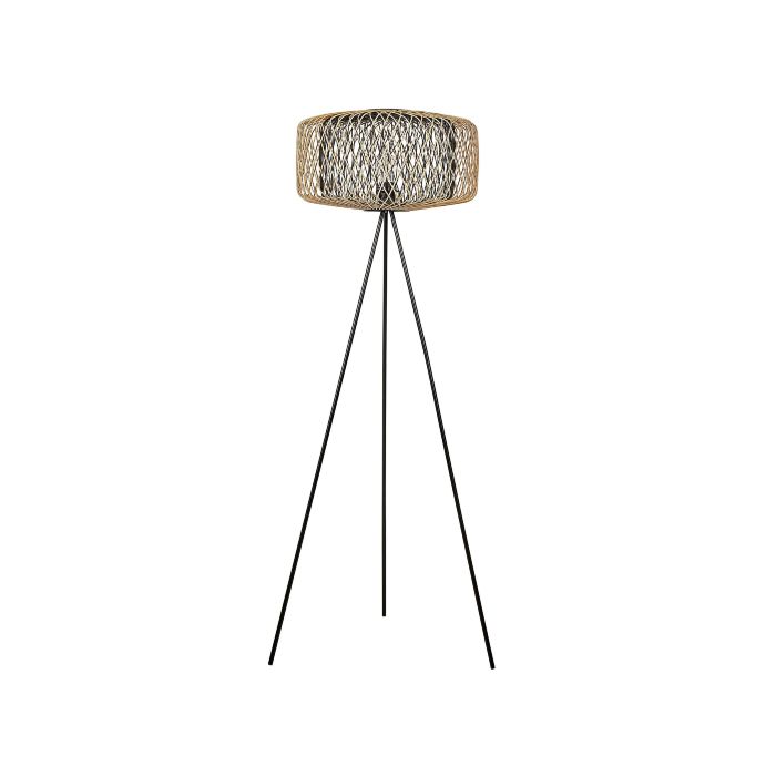 Discover the natural charm of this floor lamp, a true testament to timeless elegance. Embrace the boho vibes with the bamboo woven, openwork shade that exudes a warm and inviting glow. Supported by a sturdy metal three-legged base, this floor lamp stands tall as a captivating statement piece in any space. Bring the serenity of nature indoors with this functional yet decorative piece to create an inviting ambience. Details: Color: Black, Light Wood. Main material: Bamboo Wood. Additional material: Synthetic Material, Iron. Weight: 3 Assembly: Partial Assembly Required Wood type: Bambusoideae Wood Origin: China