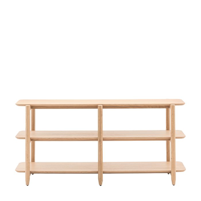 The BANBURY Wide Open Display Rack - Light Oak combines modern craftsmanship with a touch of traditional charm. Built to last and styled for versatility, it enhances any space effortlessly.