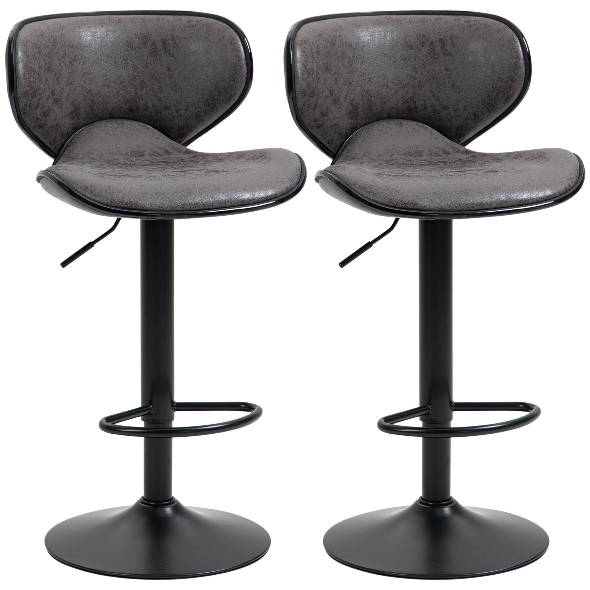 Bar Stool Set of 2 Microfiber Cloth Adjustable Height Armless Chairs with Swivel Seat, Dark Grey