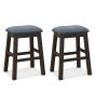 Bar Stool Set of 2 with Padded Seat and Rubber Wood Legs-Brown