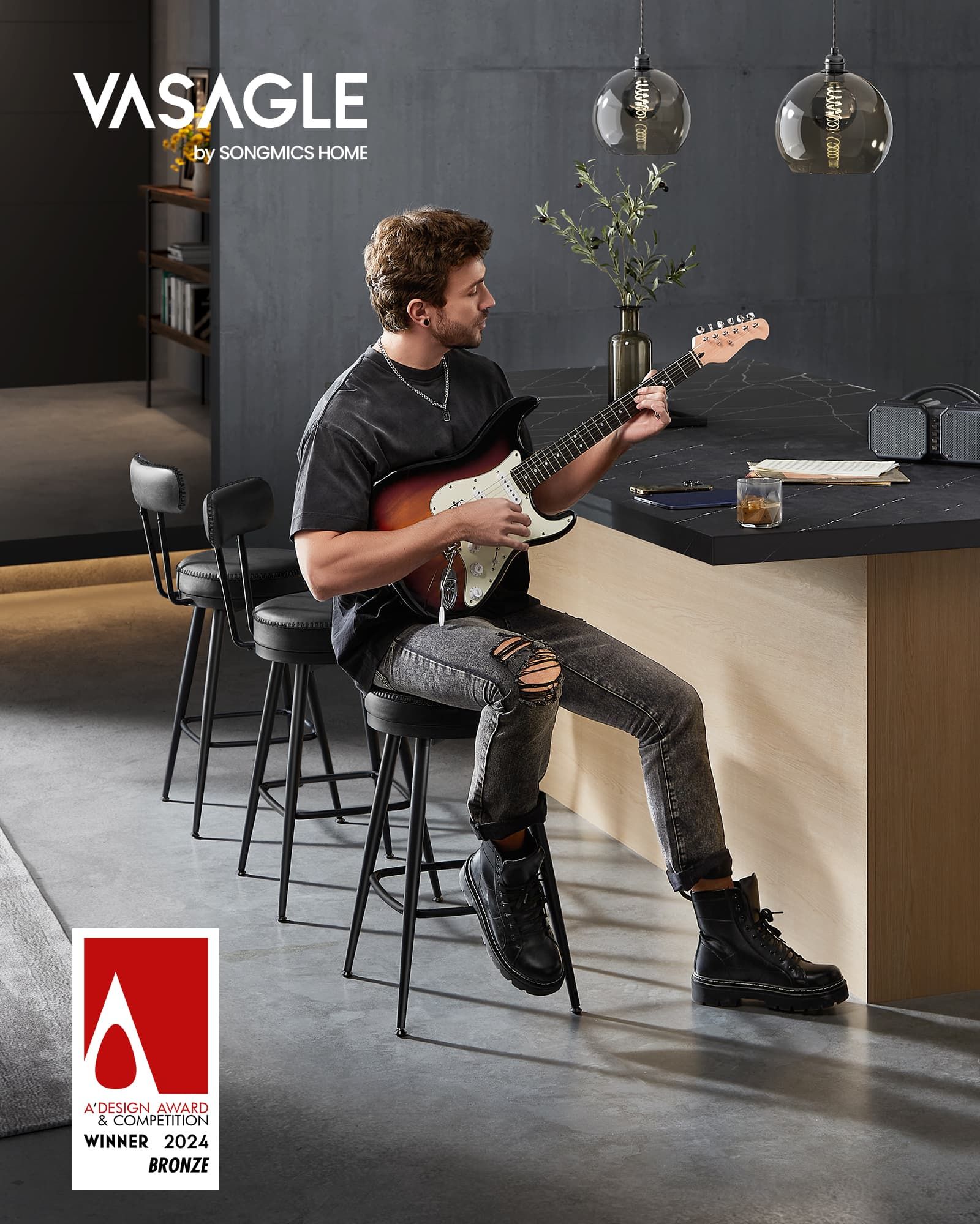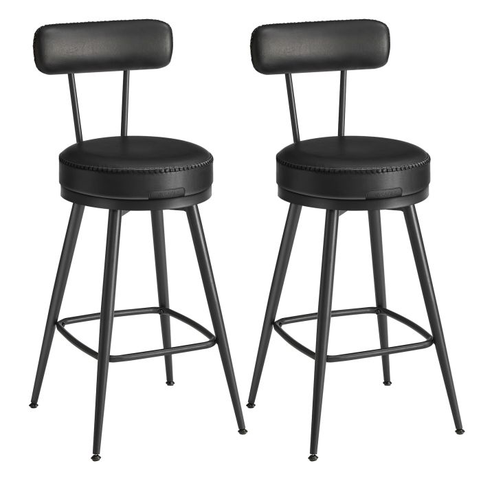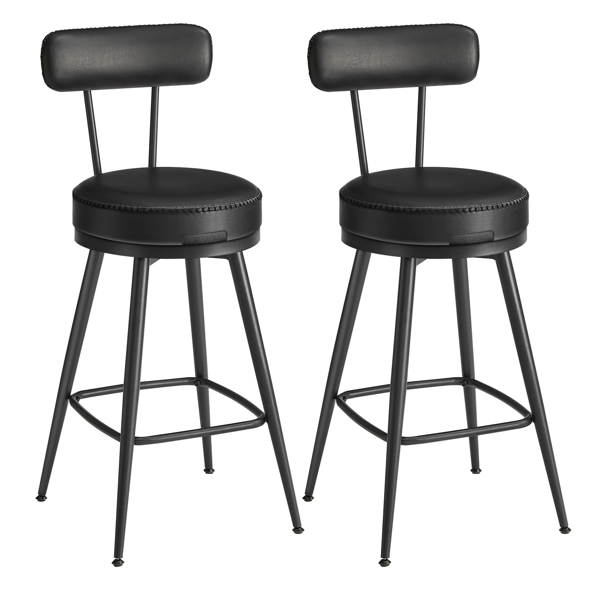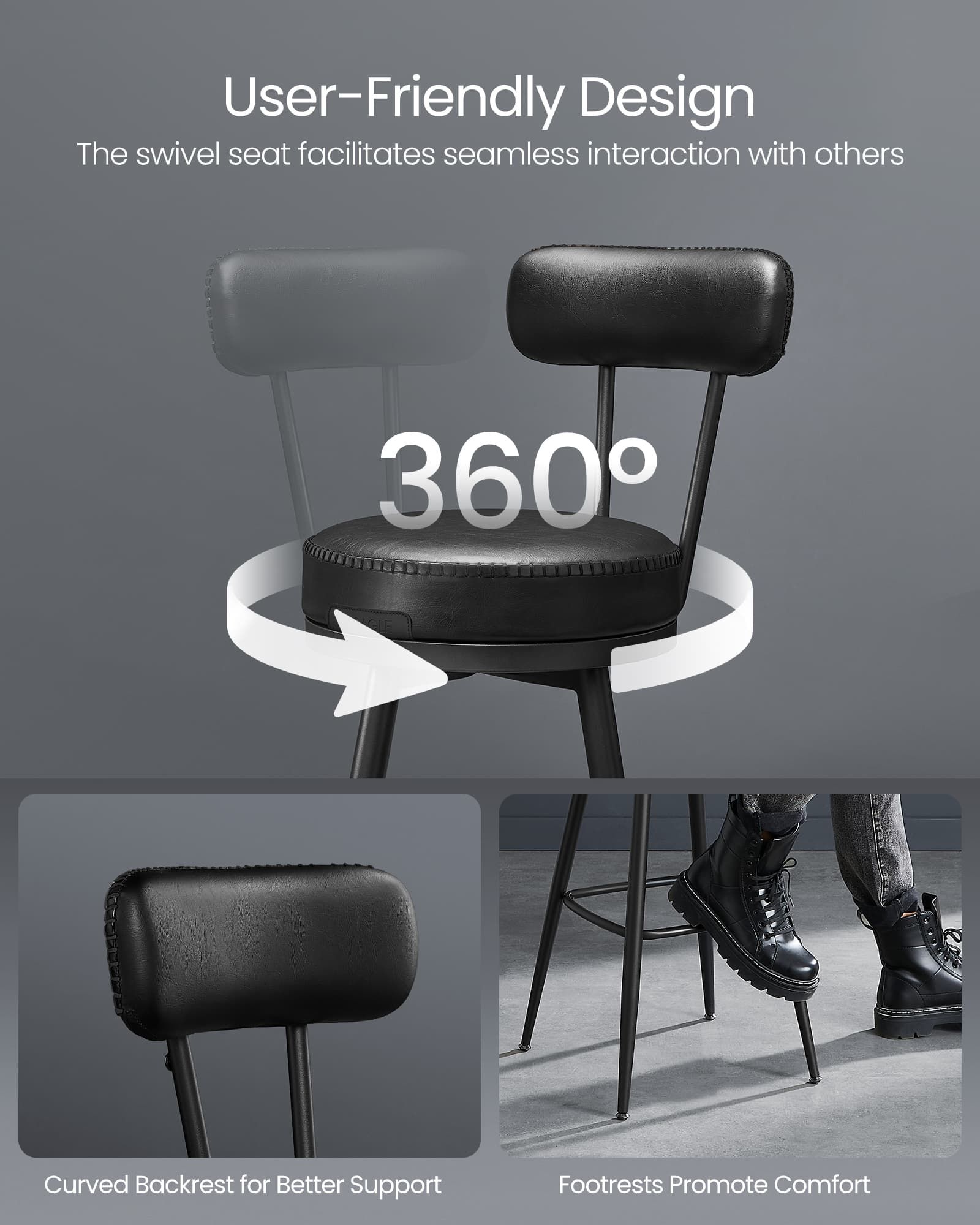 Bar Stools - LUMLIA Modern Swivel Set of 2 Mid-Century Leather - Black
