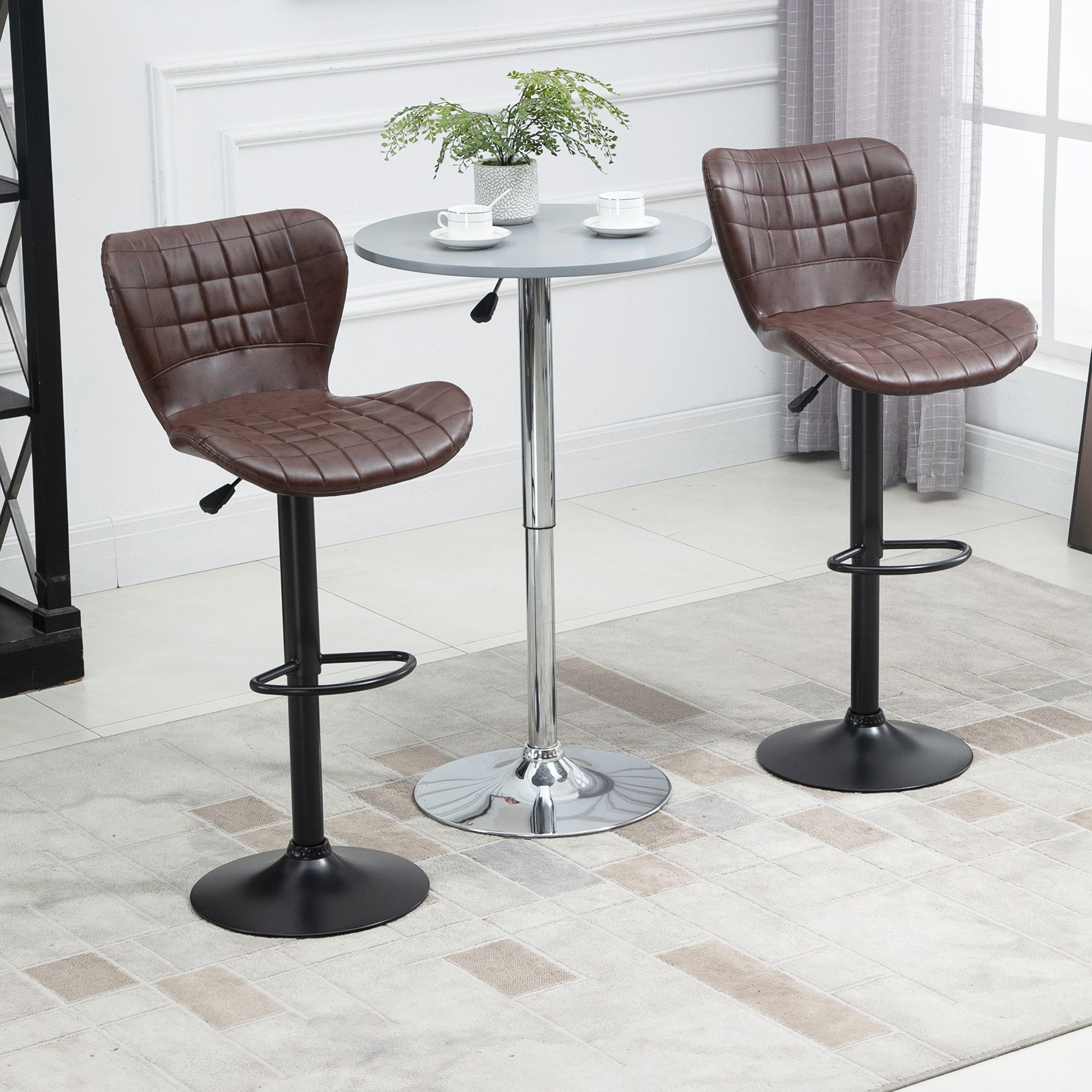 Sleek, beautiful style for the home dining area: these two breakfast bar stools from. Soft PU leather is stylish, with added indents for a unique look. Both bar stools are filled with soft sponge for comfort, with high backs for support and can swivel freely to work with you when seated. Comes complete with a metal structure, with a large round base to stand steady and bottom rest for the feet.