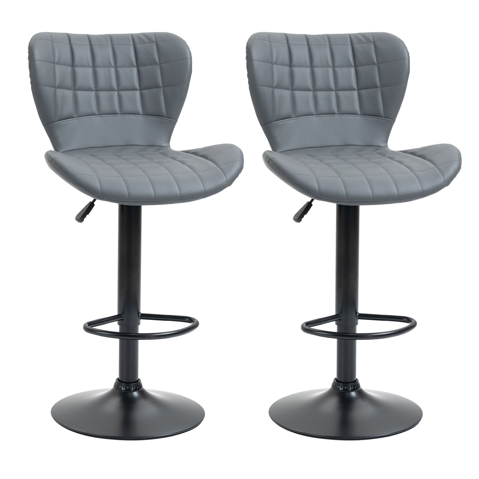 Bar Stools Set of 2 Adjustable Height Swivel Bar Chairs in PU Leather with Backrest & Footrest, Grey