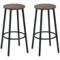 Bar Stools Set of 2, Industrial Breakfast Bar Stools with Round Footrest and Steel Legs for Dining Room, Kitchen, Rustic Brown