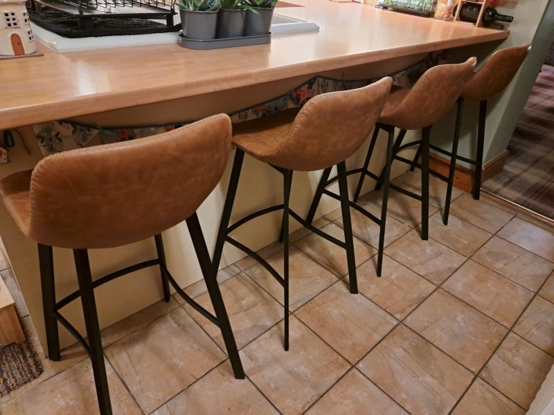 Bar Stools Set of 2, Industrial Kitchen Stool, Upholstered Bar Chairs with Back, Steel Legs, Brown