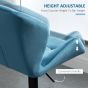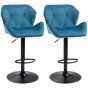Bar Stools Set Of 2 Luxurious Velvet-Touch Barstools w/ Metal Frame Footrest Round Base Triangle Indenting Moulded Seat Adjustable Height Blue