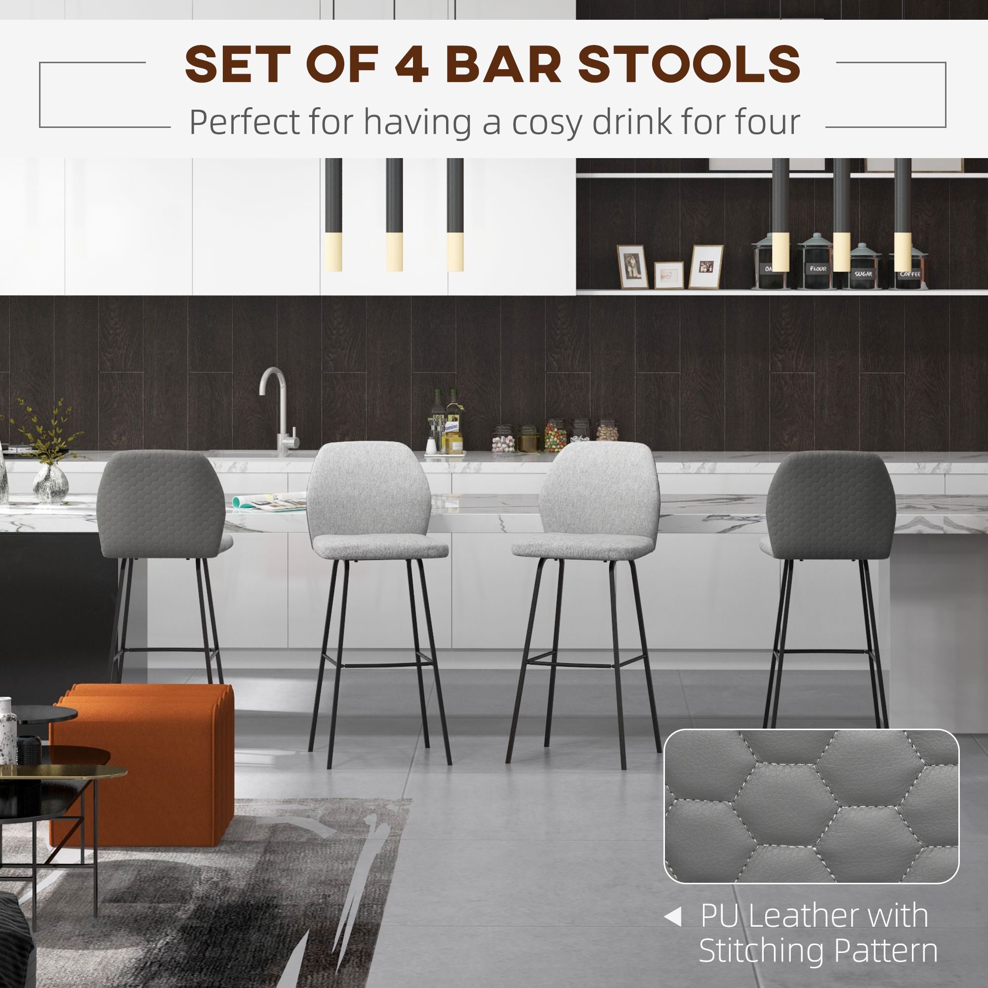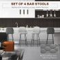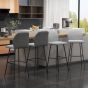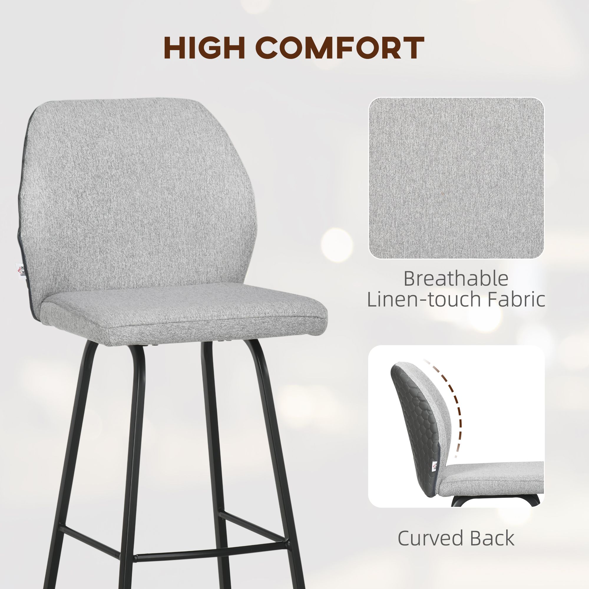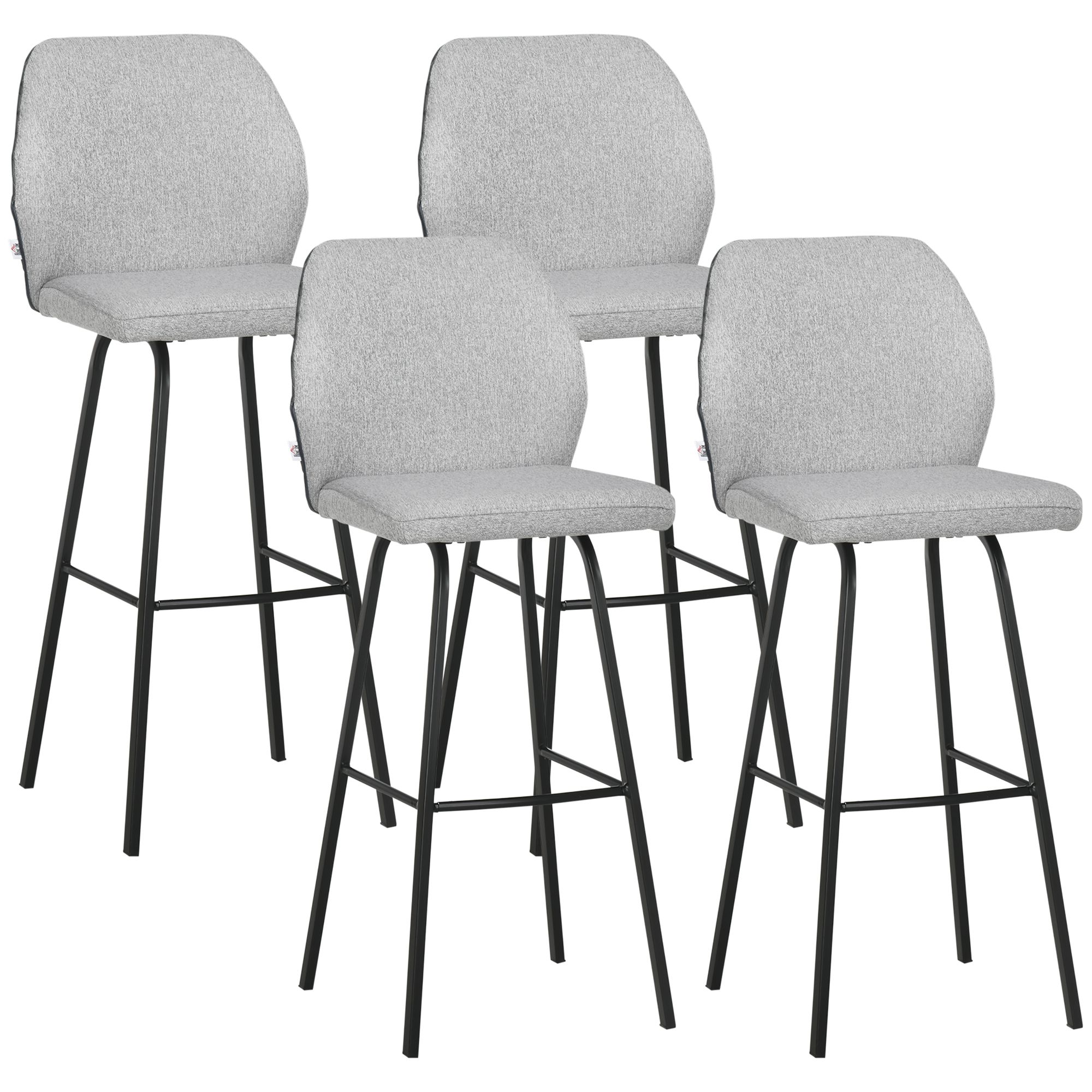 Bar Stools Set of 4, Linen-Touch Upholstered Bar Chairs, Kitchen Stools with Backs and Steel Legs for Dining Room, Light Grey