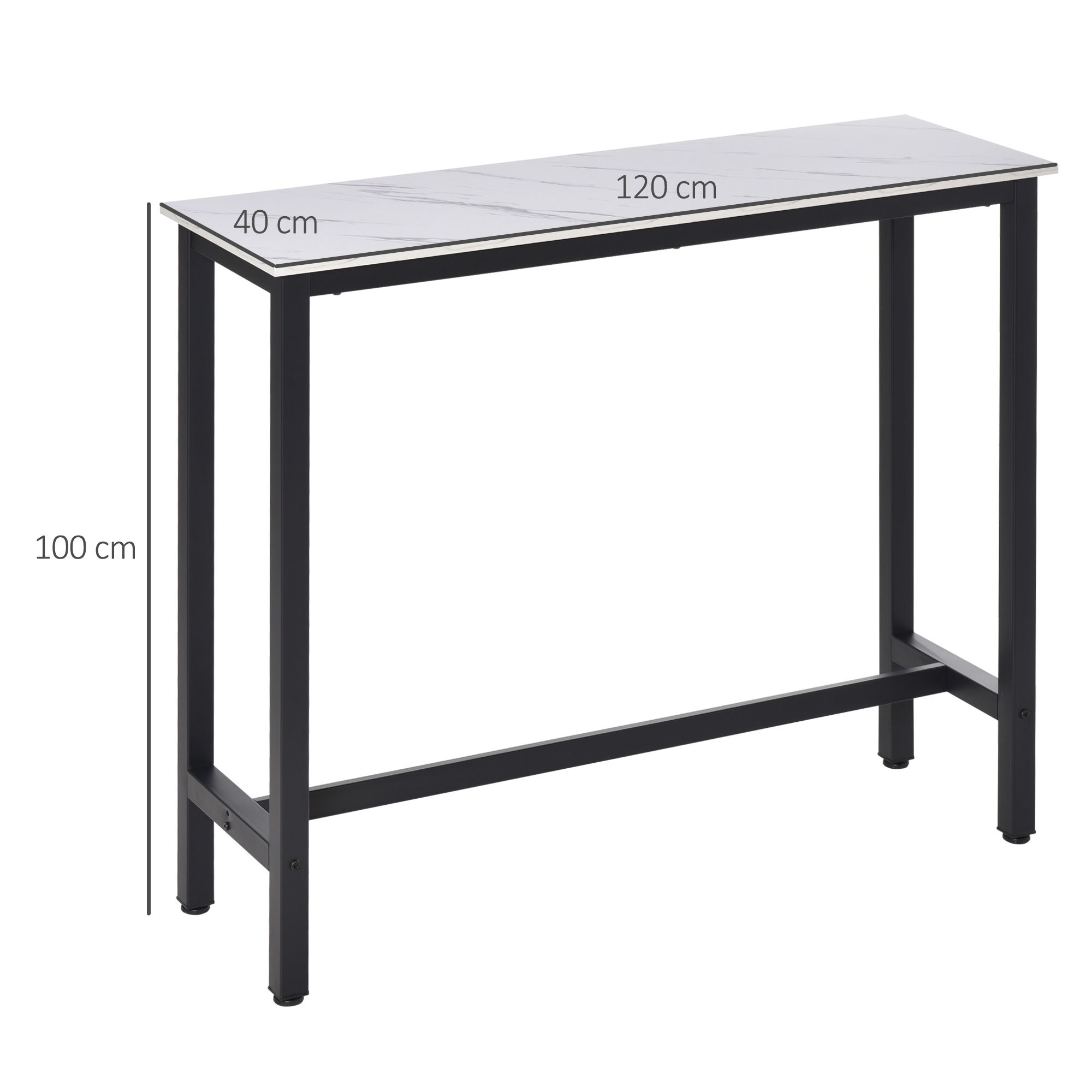 Bar Table Breakfast Marble Grain Dining Table Coffee Table with Adjustable Footpads, 120x40x100cm, White & Black
