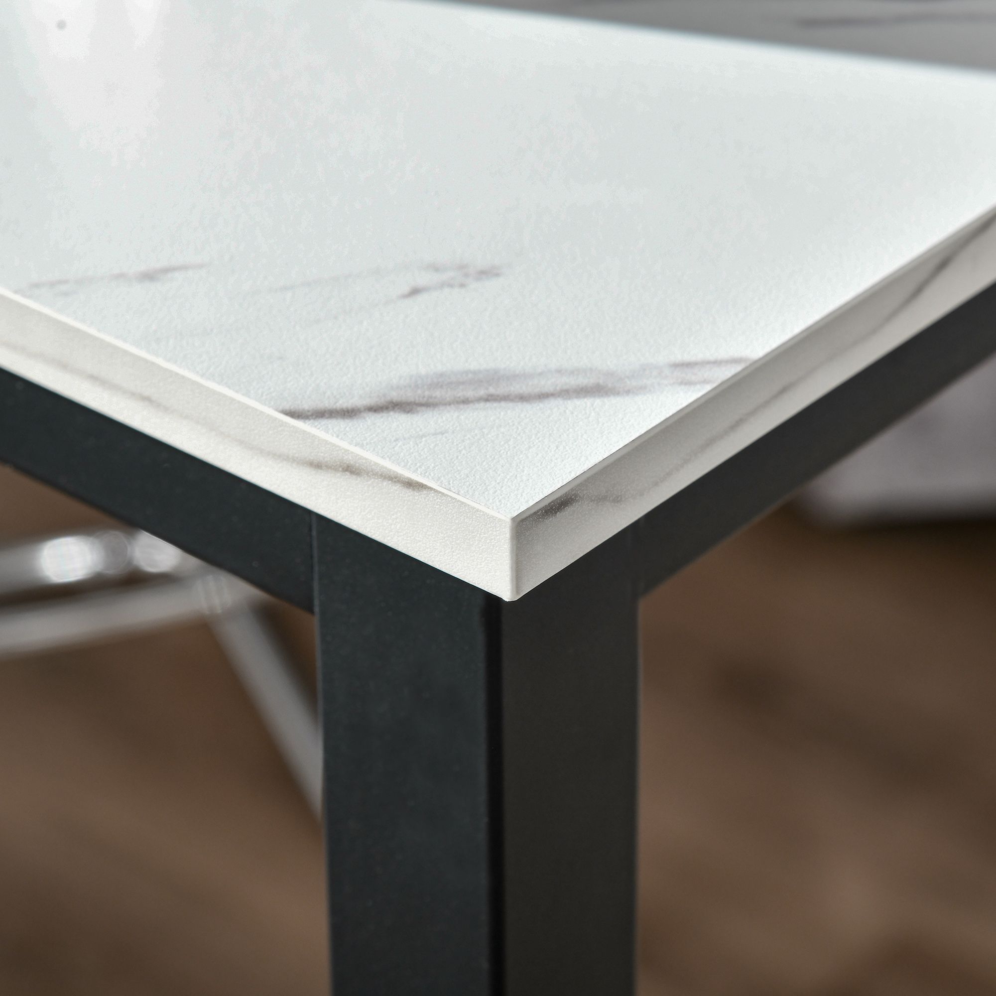 - Clean-lined steel frame with marble grain desktop makes it a great fit in a modern setting