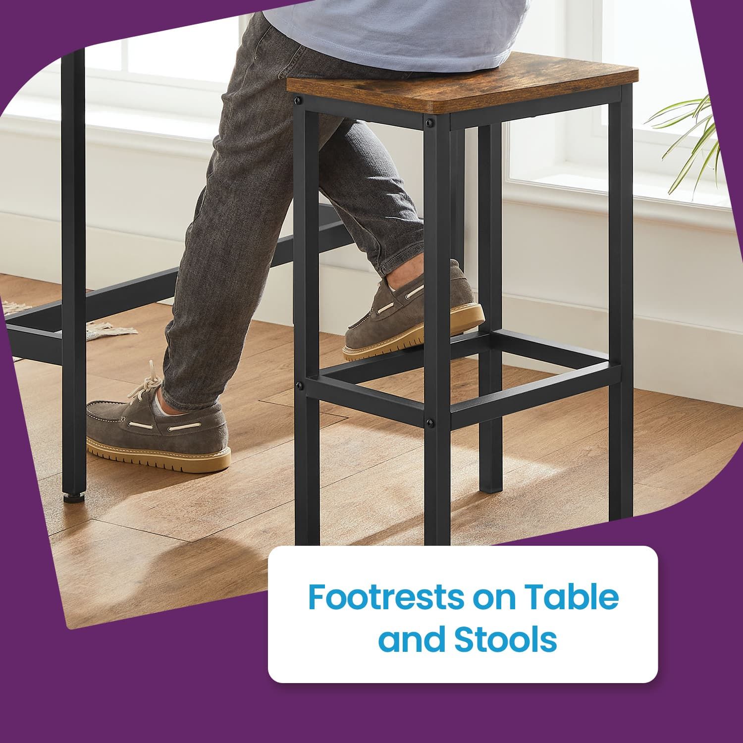 Bar Table Set - VERRA Dining Table Bar Set with 2 Stools Kitchen - Brown