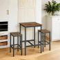 Bar Table Set - VERRA High Dining Bar Table Set with 2 Bar Chairs Stool - Dark Wood