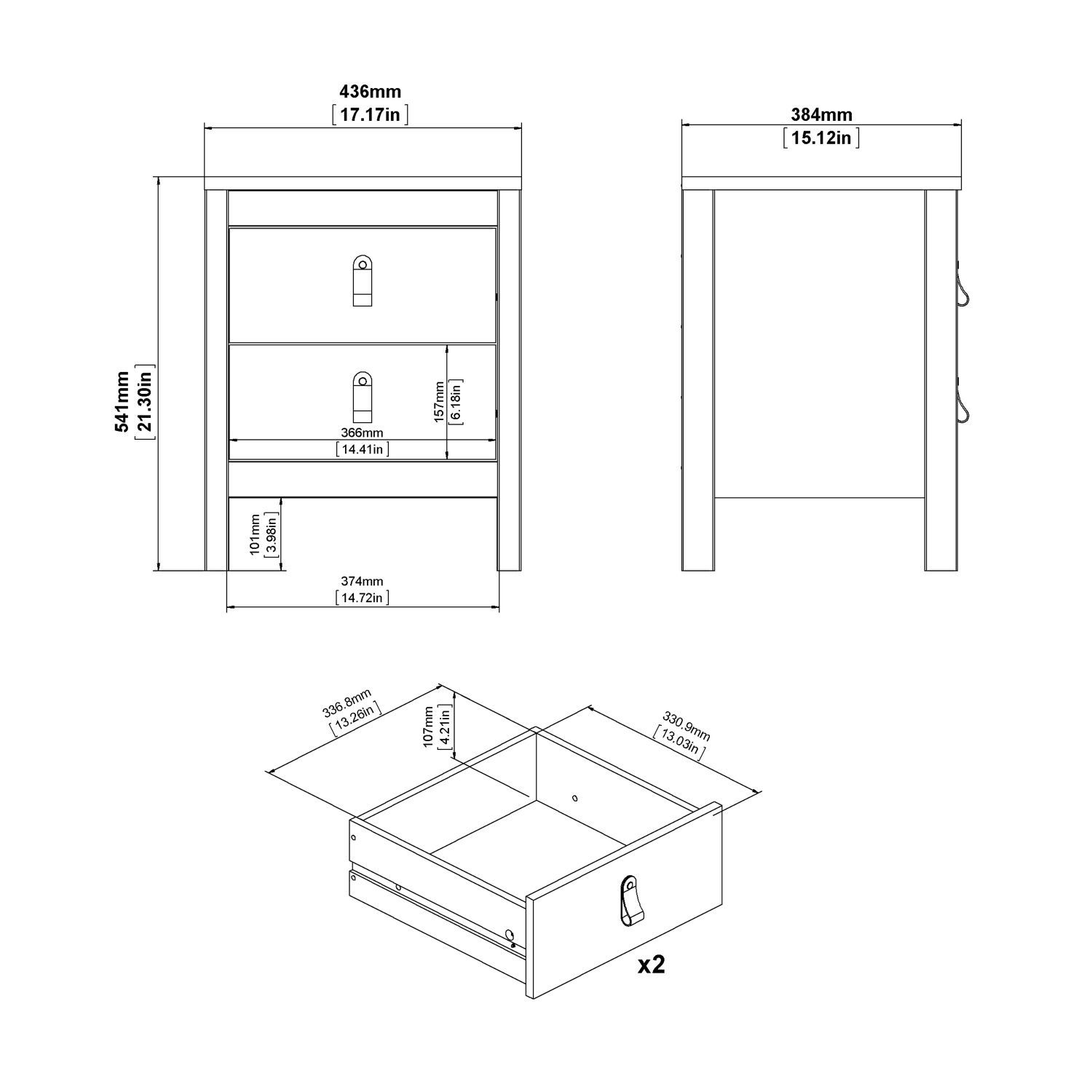 You're reviewing:Bedside Table - BARCELONA 2 Drawer Nightstand White 43.6cm