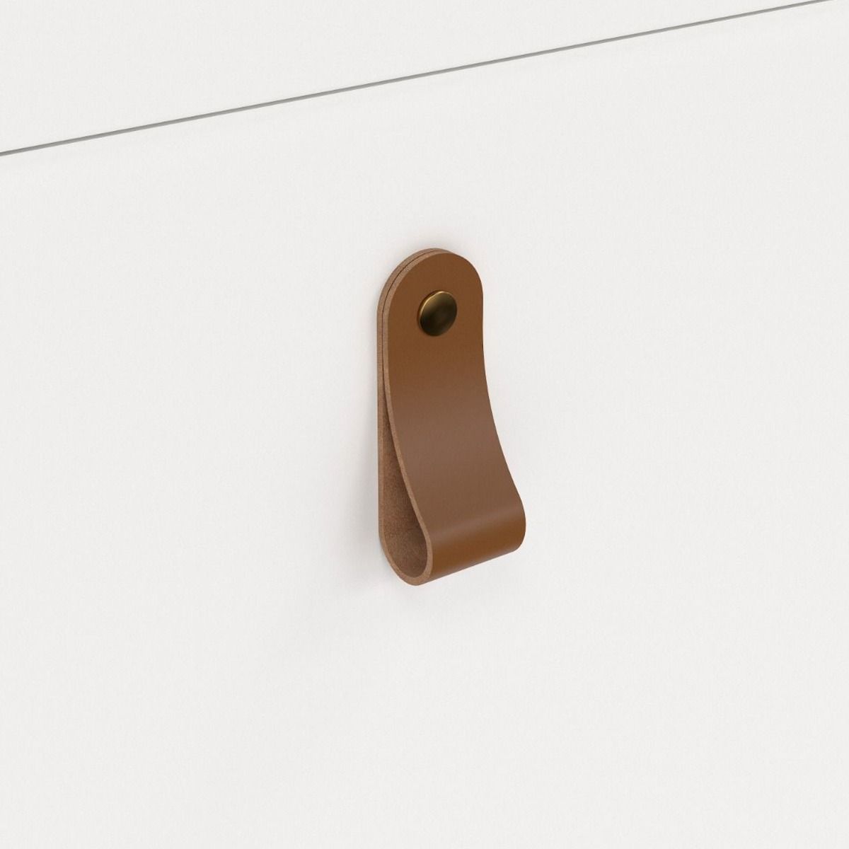 A modern shoe cabinet with four storage compartments in a striking design complete with brown leather tab handles, also available in contrasting matt black